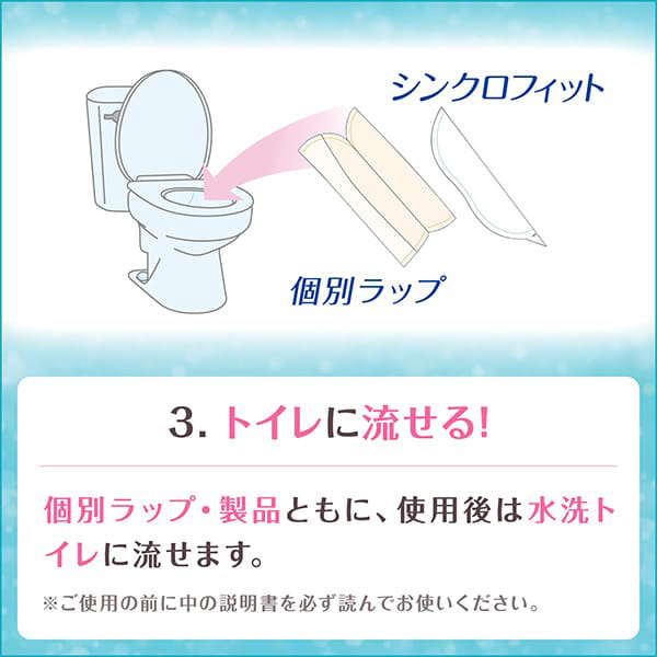 個別ラップも、使用後のシンクロフィットも、トイレに流すことができます。
