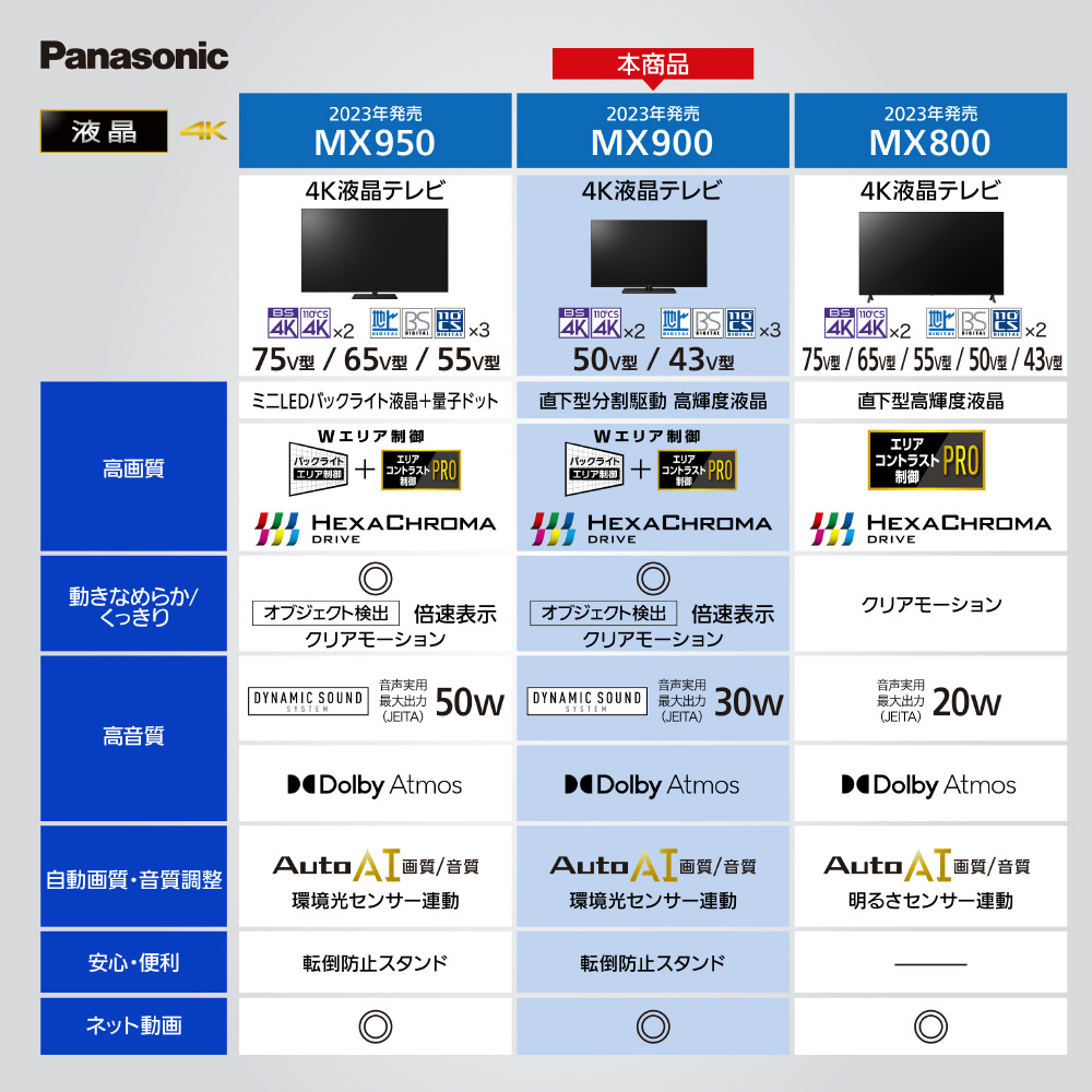 | 商品名 | 液晶テレビ VIERA(ビエラ) TH-50MX900 [50V型 /Bluetooth対応 /4K対応 /BS・CS 4Kチューナー内蔵 /YouTube対応] |