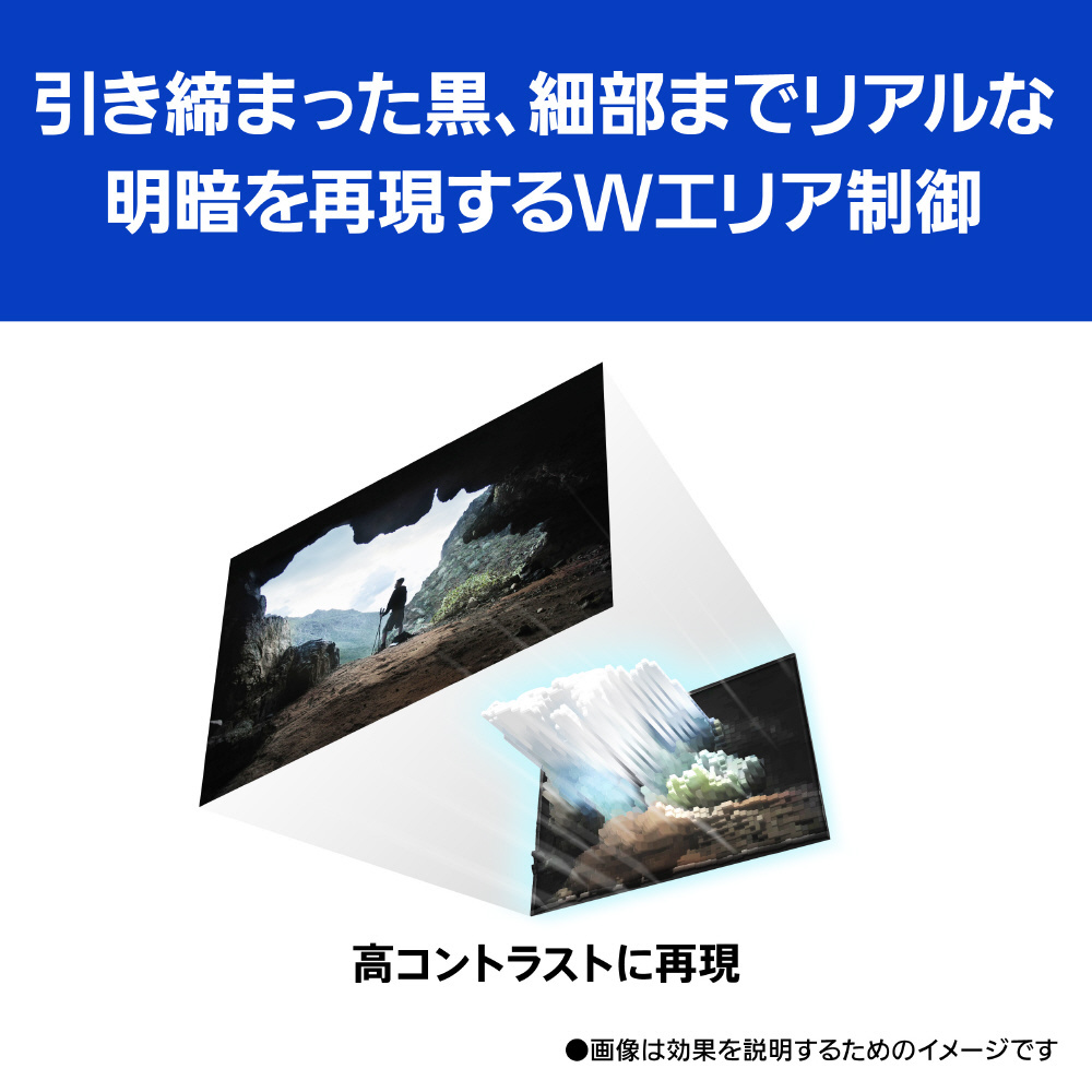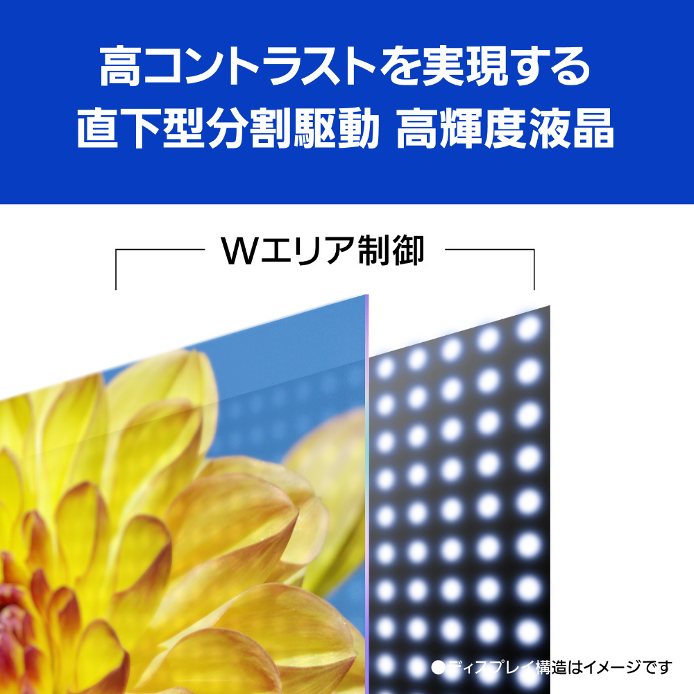 直下型のバックライトを分割駆動することで、液晶テレビの明るさに加え、豊かな明暗表現が可能です。