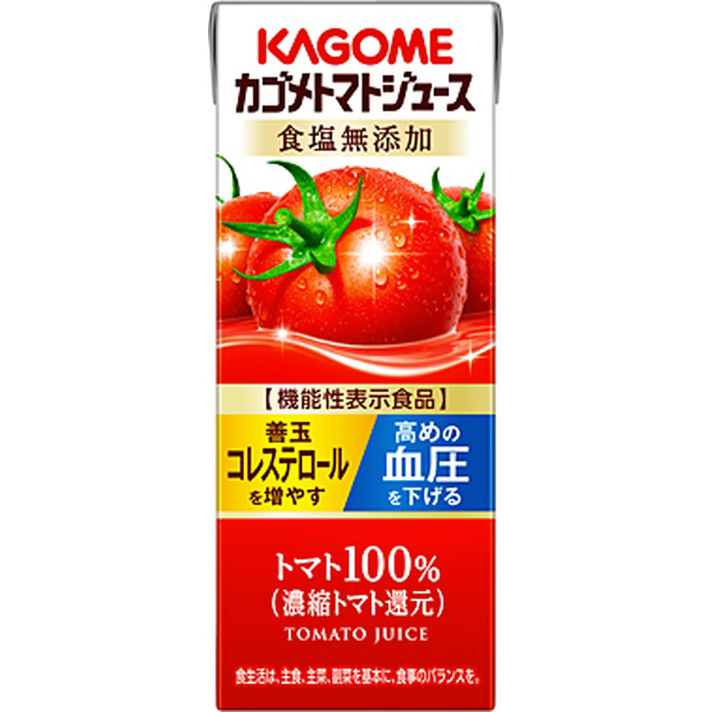 カゴメトマトジュース食塩無添加200mLは機能性表示食品です。本品にはリコピンとGABAが含まれます。リコピンには血中HDL(善玉)コレステロールを増やす機能が、GABAには高めの血圧を下げる機能があることが報告されています。血中コレステロールが気になる方や血圧が高めの方にお勧めです。1日1本(200mL)を目安にお召し上がりください。