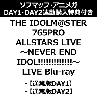 【特典対象】 THE IDOLM@STER 765PRO ALLSTARS LIVE 〜NEVER END IDOL!!!!!!!!!!!!!〜 LIVE Blu-ray 【通常版DAY1】【通常版DAY2】同時購入セット ◆ソフマップ・アニメガDAY1・DAY2連動購入特典「缶バッジ14種セット(76mm)」 |
