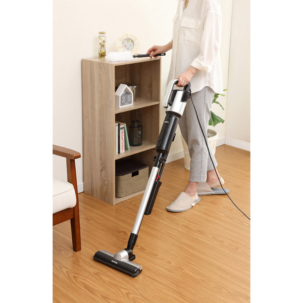 その場でサッとモップ掃除が出来て、モップについたほこりを吸引できる「モップクリーンシステム」搭載の極細軽量スティッククリーナーです。