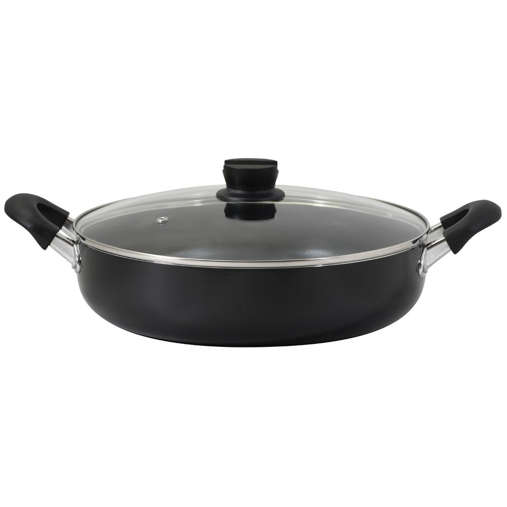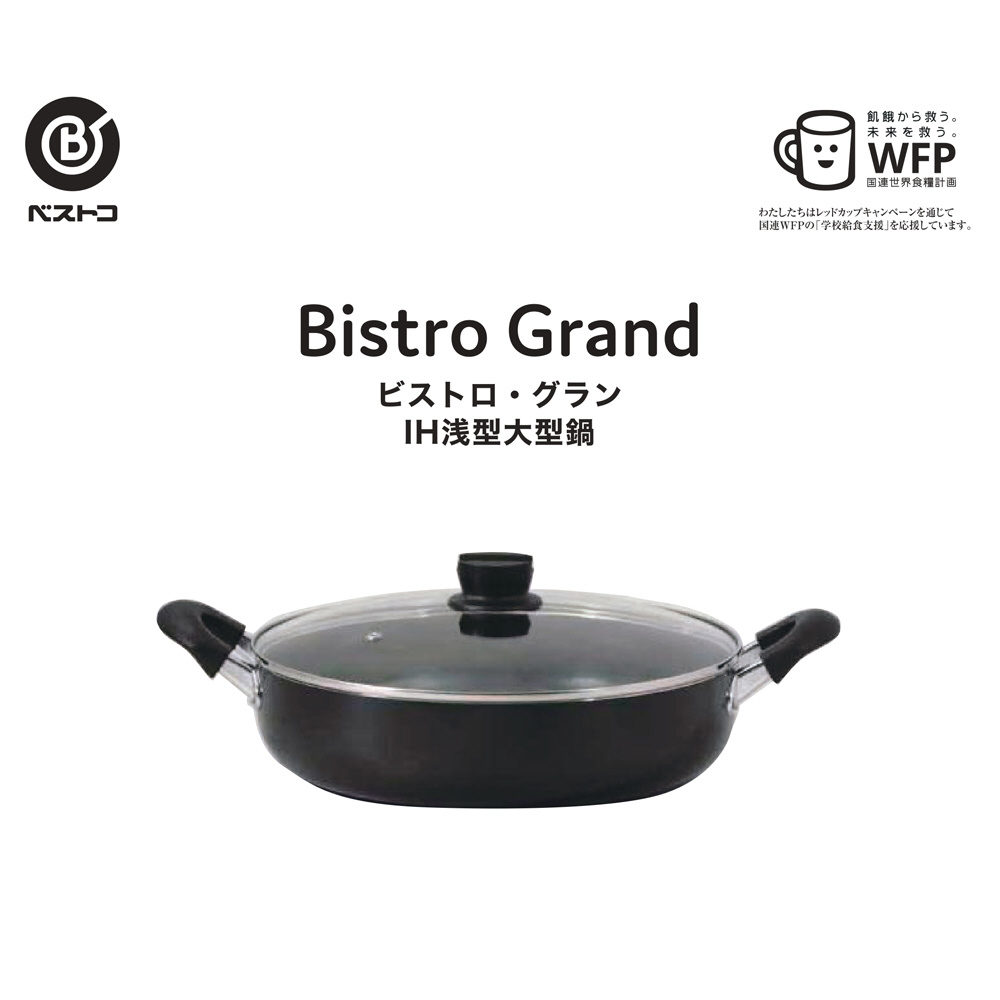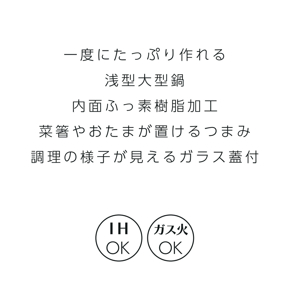 両手鍋 32cm 浅型 ガラス蓋付 IH ガス火対応 大容量 ビストロ・グラン ブラック NQ-0401