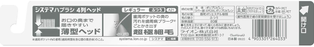 | 商品名 | システマ ハブラシ レギュラー 4列 ふつう (1本) 〔歯ブラシ〕 |