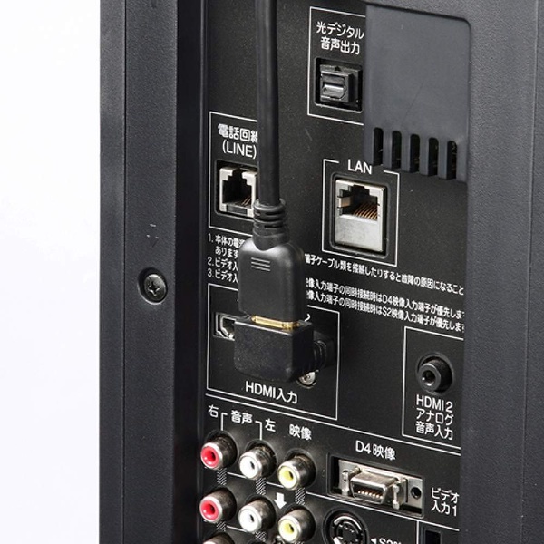 HDMI機器裏側のケーブル配線をスッキリさせるHDMI L型アングル上向きアダプタ。