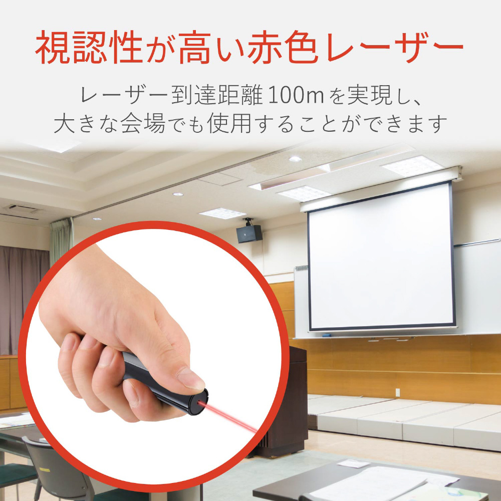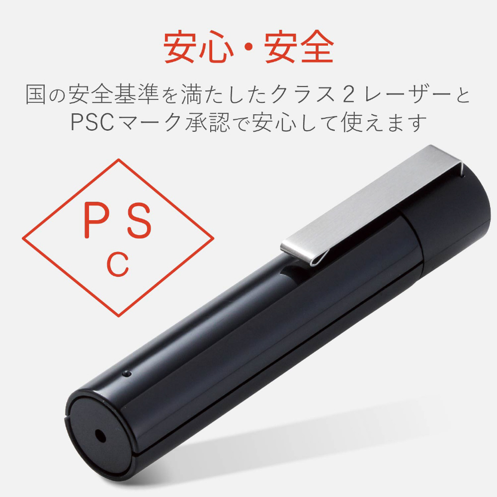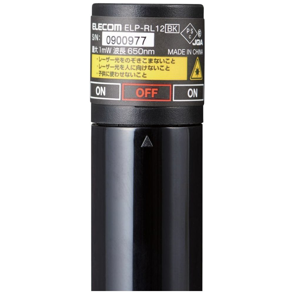 赤色レーザーポインター プレゼンター機能無し ボタンレス ELP-RL12BK ブラック