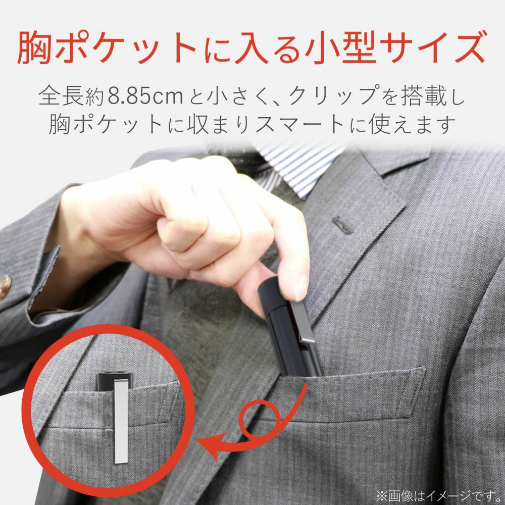 小さな胸ポケットにも収まり、携帯に便利。 全長約89mm・重さ15gと小型・軽量で持ち運びに便利な赤色レーザーポインター。