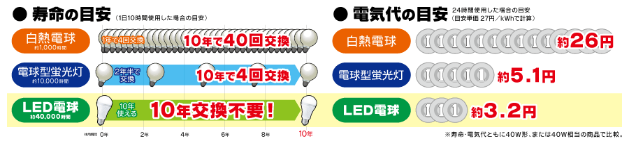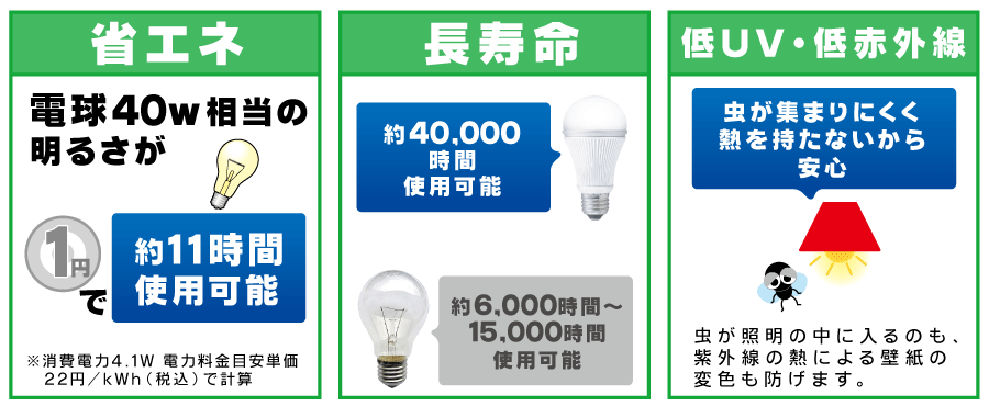 調光タイプ。明るく省エネ、長寿命約40000時間。小型電球E17タイプで業界最軽量!