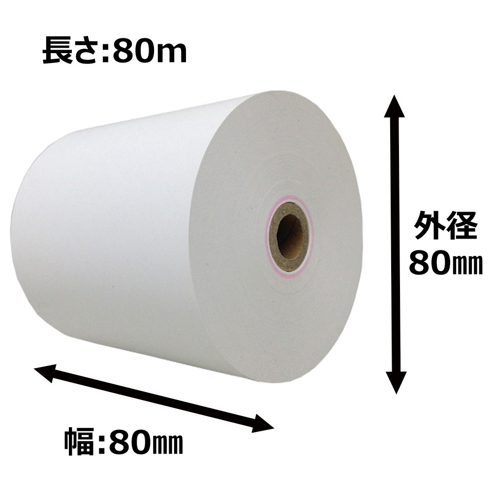 幅80mm、外径80mm(長さ約80m)タイプのサーマルプリンター用ロールペーパー