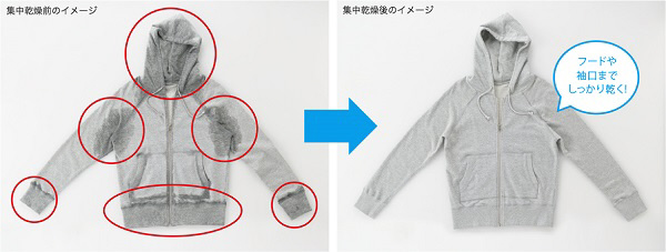「全体乾燥」+「集中乾燥」で乾きにくいモノも、カラッとうれしい仕上がりに。