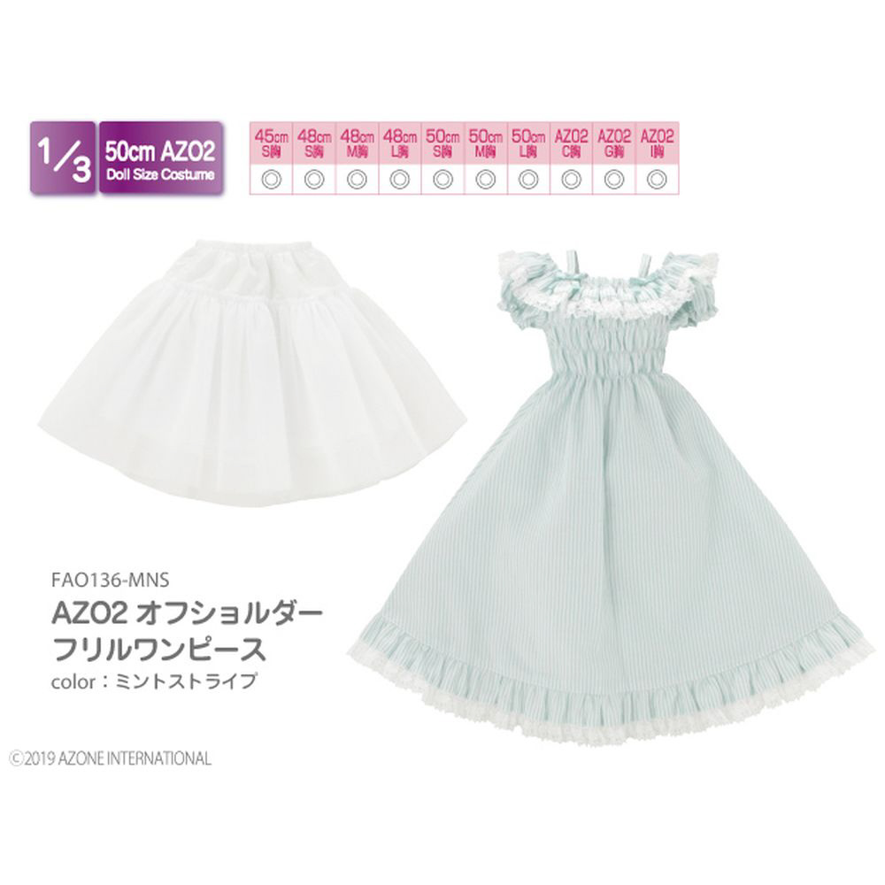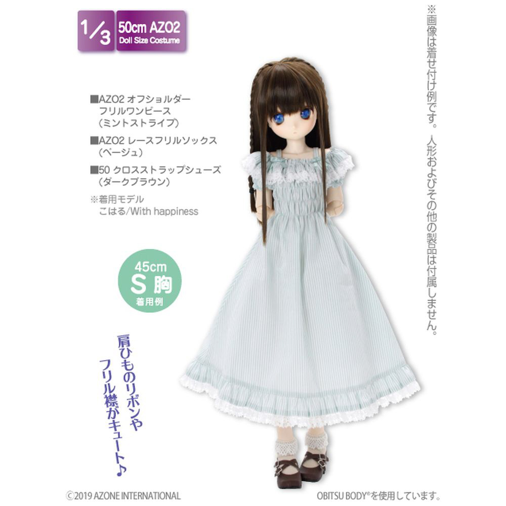 1/3 スケール用ウェア AZO2 オフショルダーフリルワンピース ミントストライプ ドールウェア