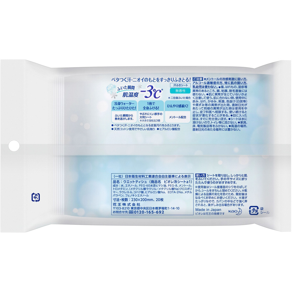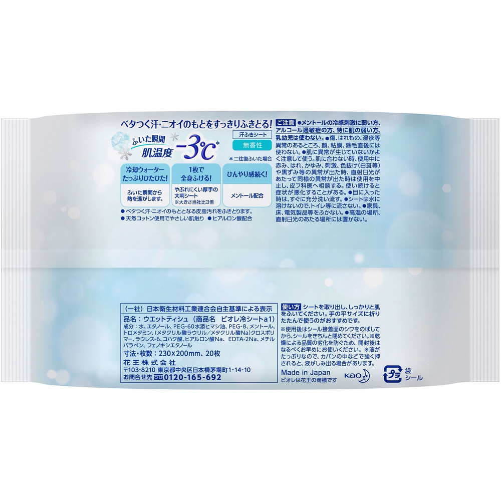 | 商品名 | Biore(ビオレ) 冷シート 無香性 20枚(20枚)〔ボディシート〕 |
