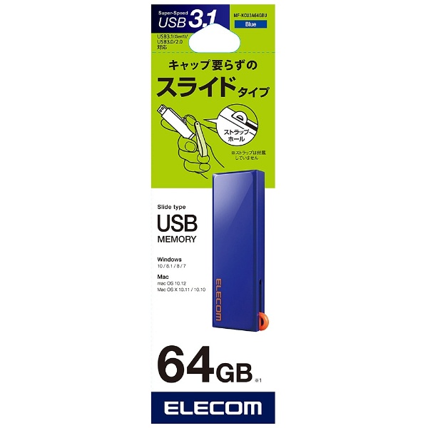 MF-KCU3A64GBU USBメモリ MF-KCU3ABUシリーズ ブルー [64GB /USB3.1 /USB TypeA /スライド式]