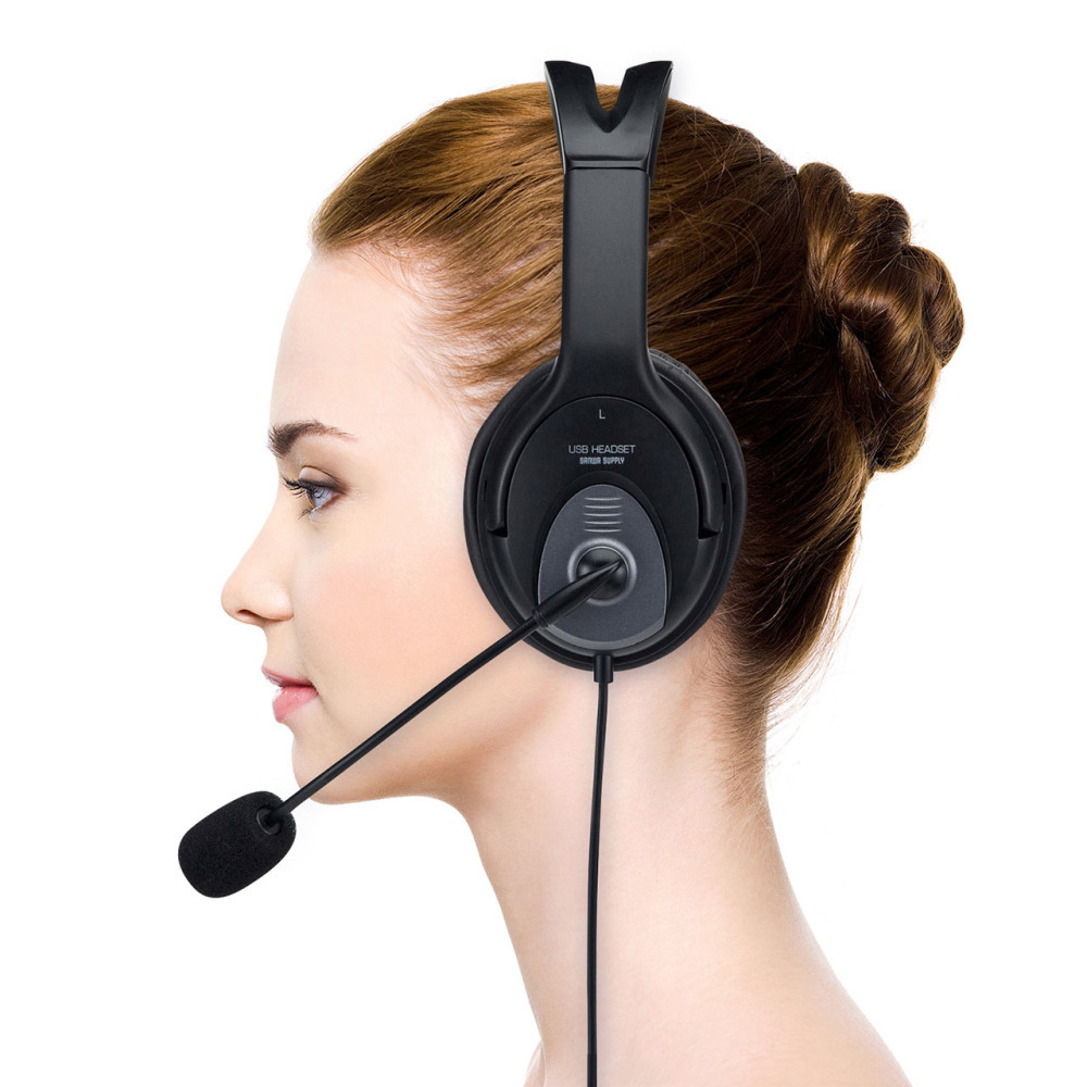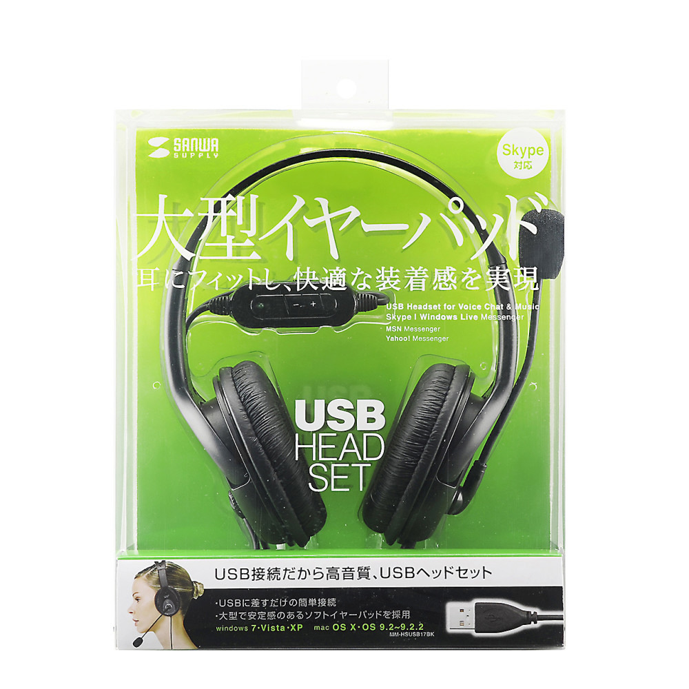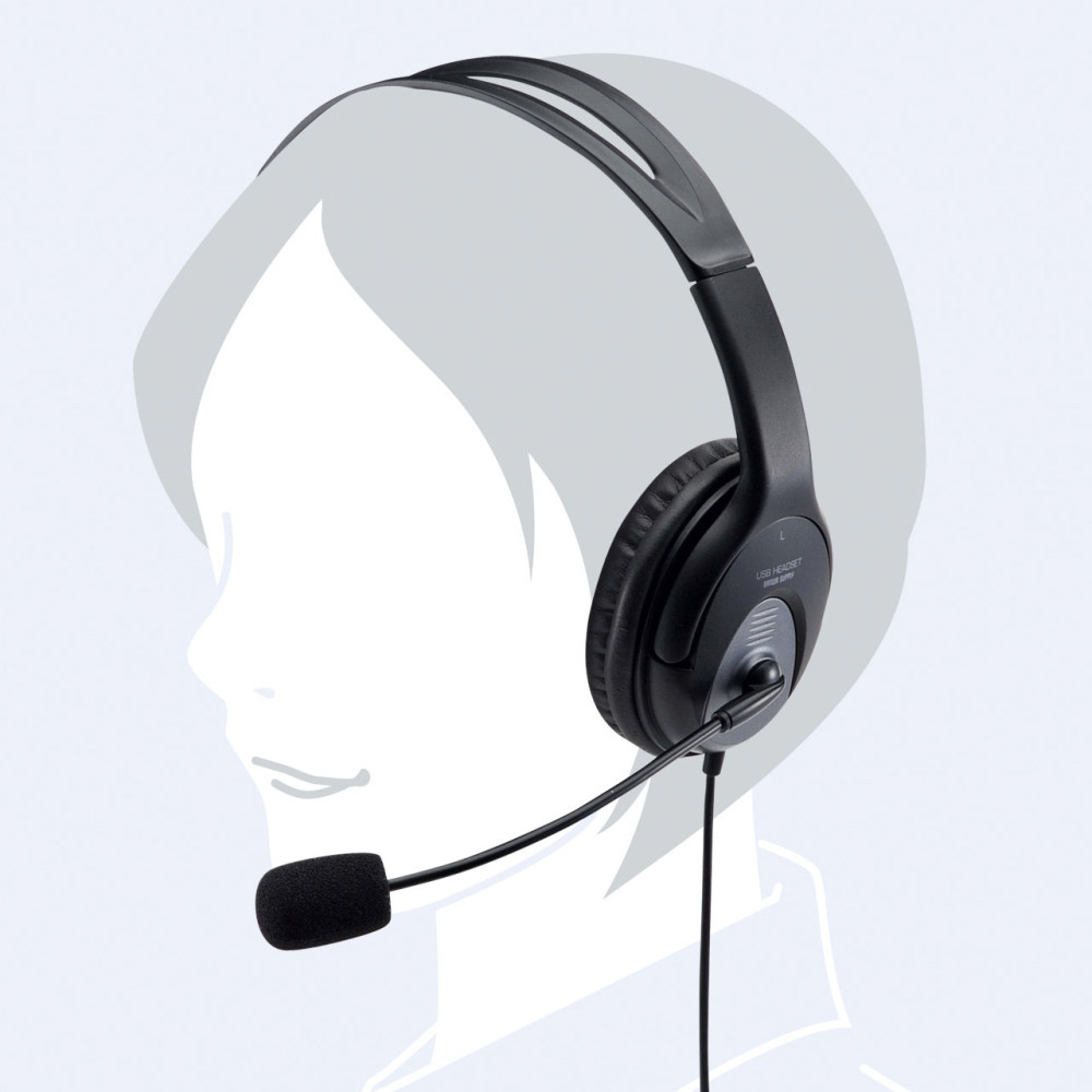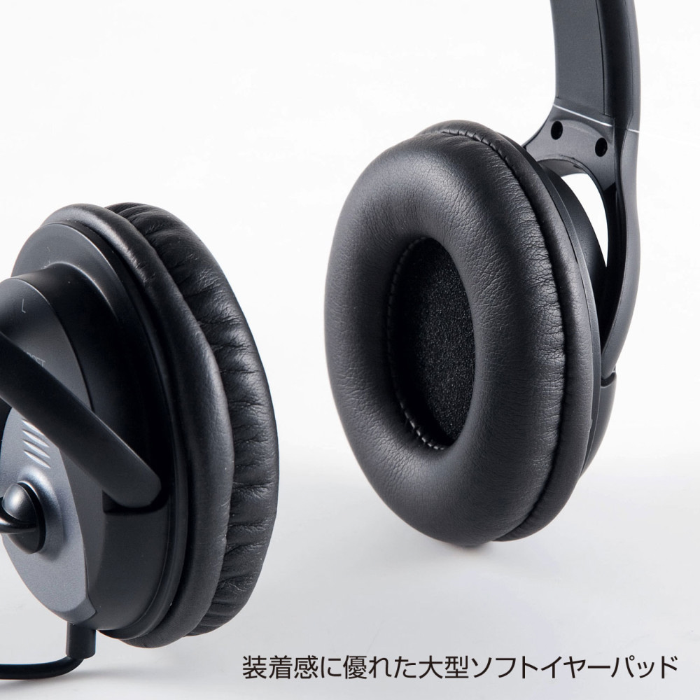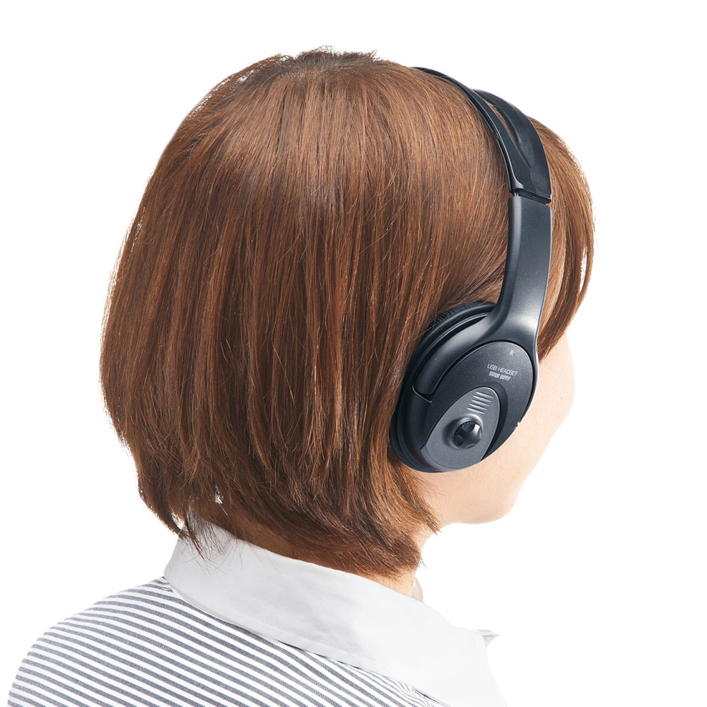 【オーバーヘッド】【手元ボリューム】【大型ソフトイヤーパッド】[Win/Mac]大型ソフトイヤーパッドで装着感に優れたUSBヘッドセット。ブラック。