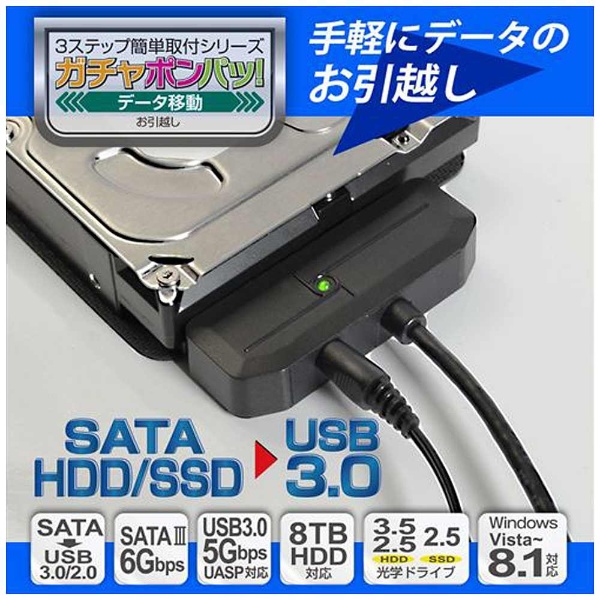 2.5インチ/3.5インチSATA HDD用アダプタ ACアダプタ付 SATA⇒USB3.0 USB3.0 新IC UASP対応 ガチャポンパッ!でデータ移動 OWL-PCSPS3U3U2