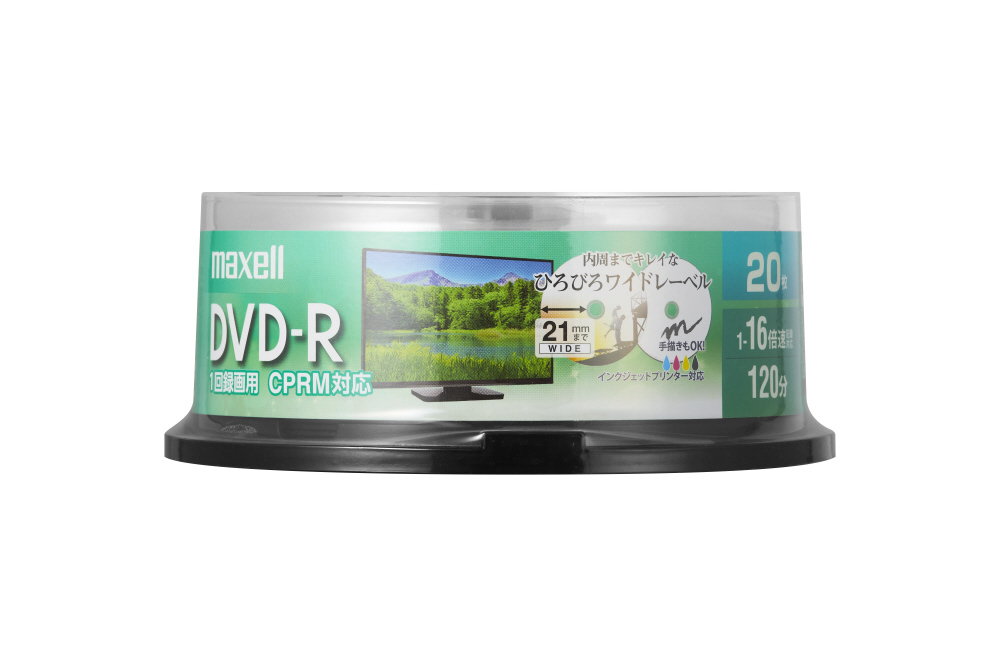 録画用DVD-R 1〜16倍速 20枚 120分(標準モード)/片面4.7GB CPRM対応 【インクジェットプリンター対応】 DRD120WPE.20SP