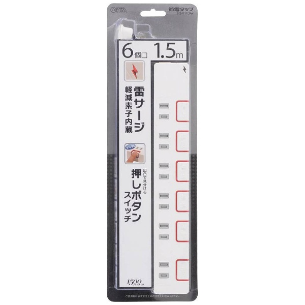 プッシュスイッチ式節電タップ (6個口・1.5m・ホワイト) HST1189W [OAタップ]