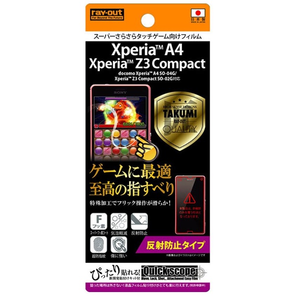 Xperia A4 / Xperia Z3 Compact用 反射防止タイプ/スーパーさらさらタッチゲーム向けフィルム 1枚入 RT-XA4F/TG1