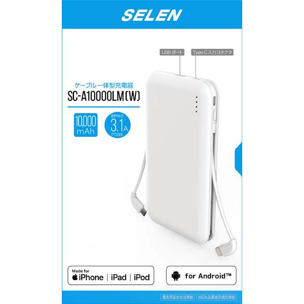 SC-A10000LM(W) Lightning&microUSBケーブル一体型充電器[10000mAh/白/Lightning]