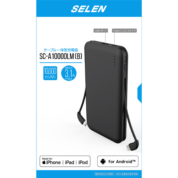 SC-A10000LM(B) Lightning&microUSBケーブル一体型充電器[10000mAh/黒/Lightning]