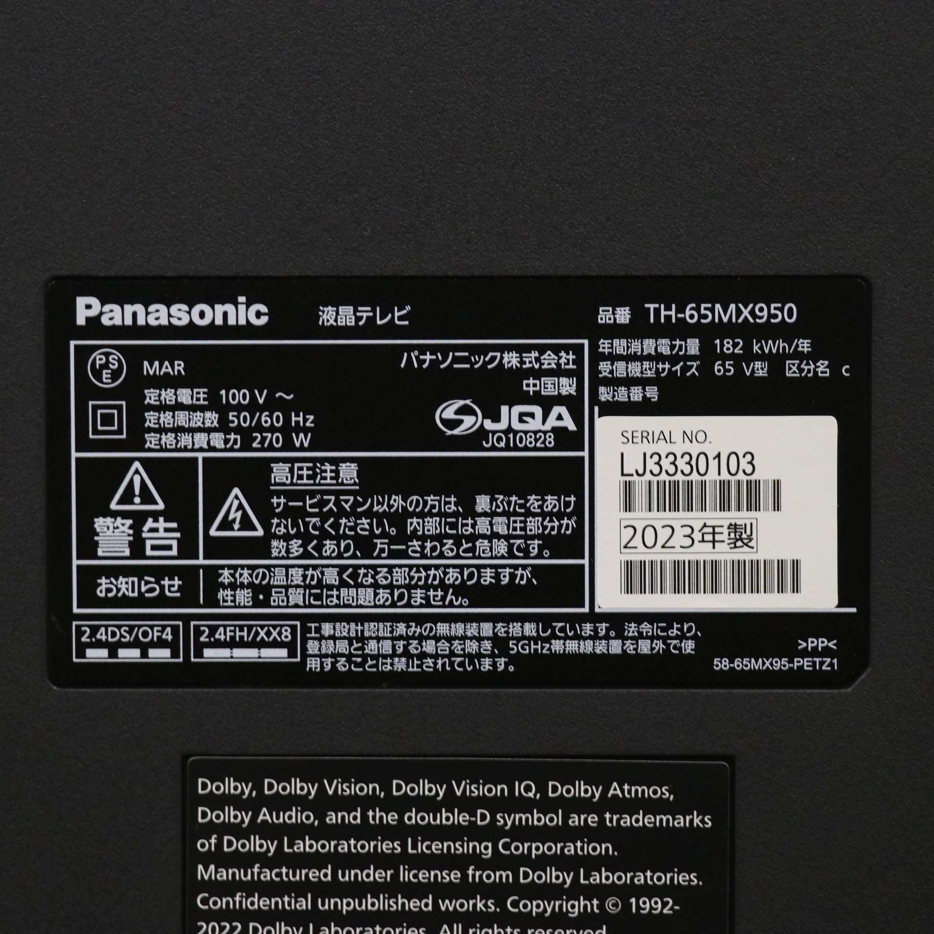 〔展示品〕 液晶テレビ VIERA(ビエラ) TH-65MX950 [65V型 /Bluetooth対応 /4K対応 /BS・CS 4Kチューナー内蔵 /YouTube対応]