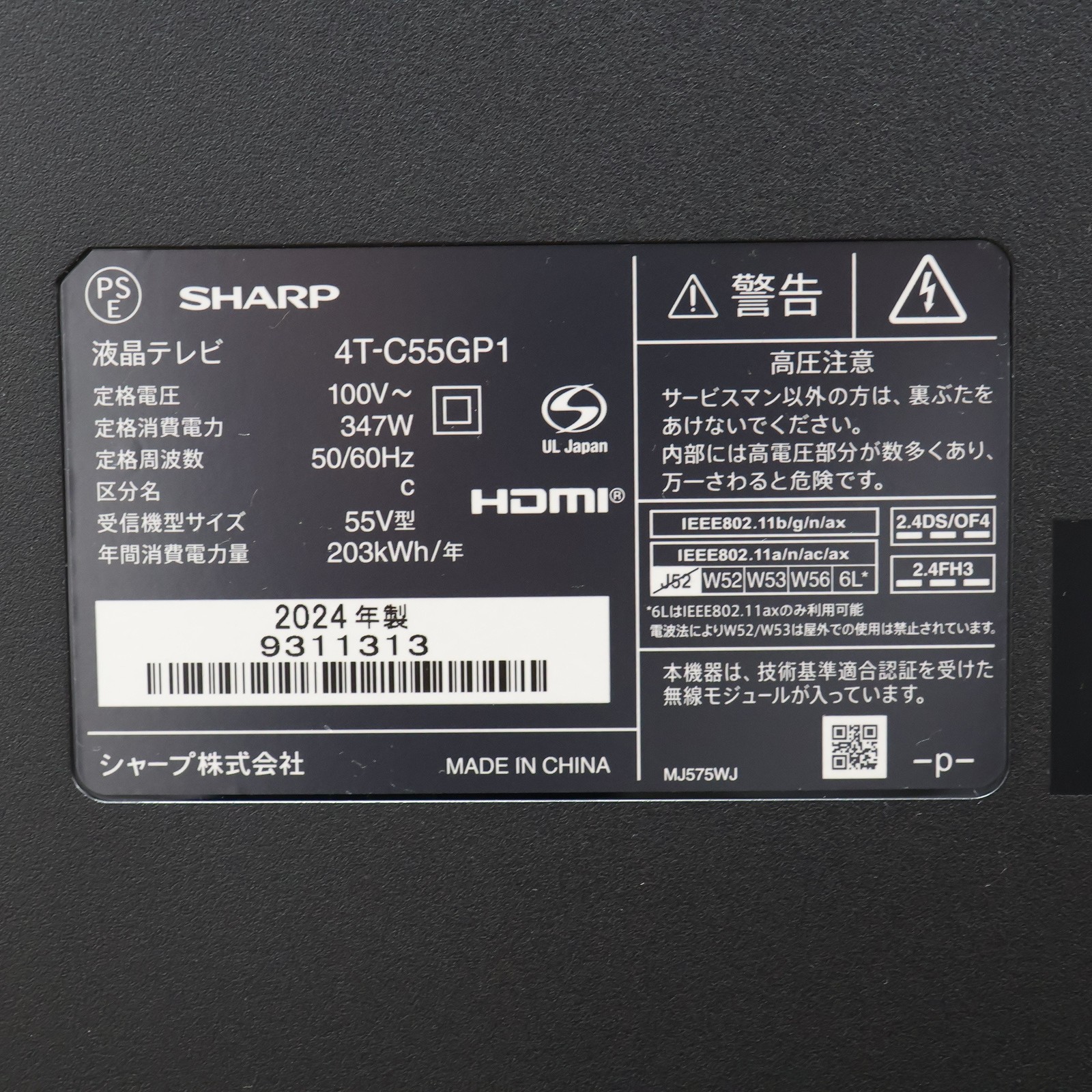 〔展示品〕 液晶テレビ AQUOS ブラック 4T-C55GP1 [55V型 /Bluetooth対応 /4K対応 /BS・CS 4Kチューナー内蔵 /YouTube対応]