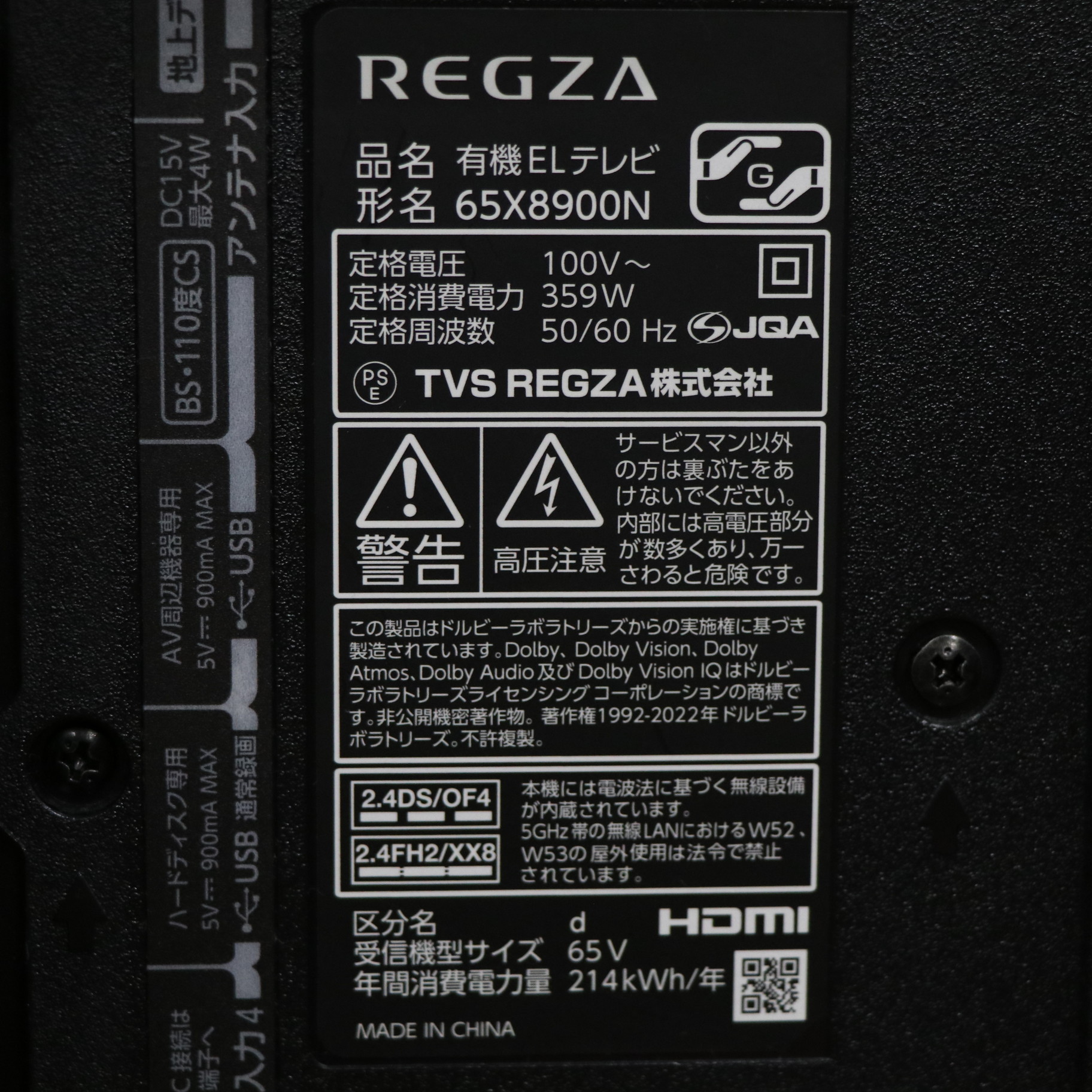 〔展示品〕 有機ELテレビ REGZA(レグザ) 65X8900N [65V型 /Bluetooth対応 /4K対応 /BS・CS 4Kチューナー内蔵 /YouTube対応]