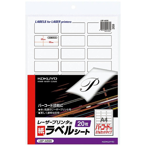 レーザープリンタ用ラベルシート (A4サイズ・27面・20枚) LBP-A696N