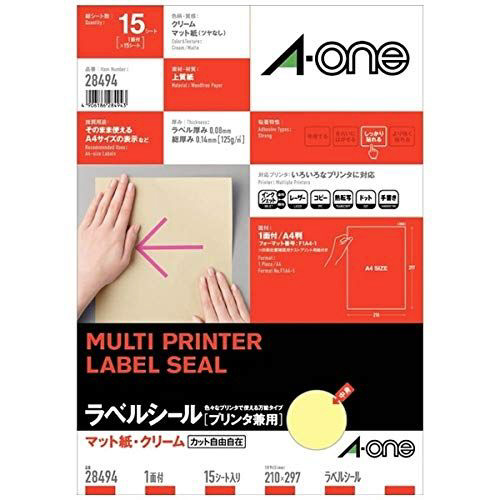 28494 (マルチプリンタラベル/色上質紙タイプ クリーム/A4判 ノーカット/15シート入り)
