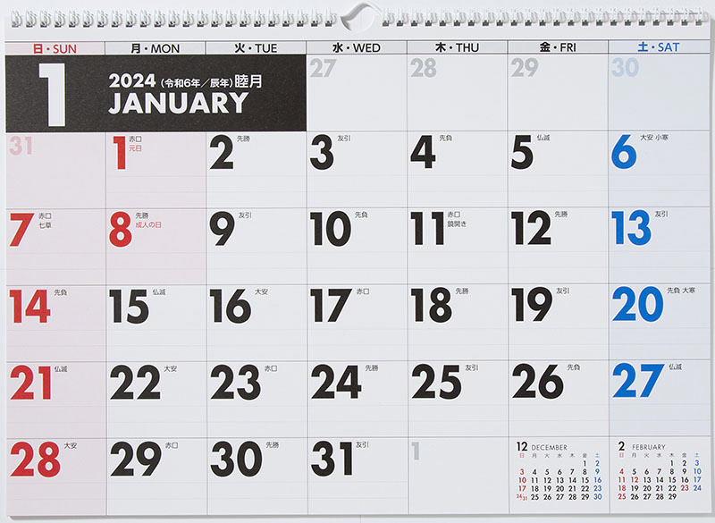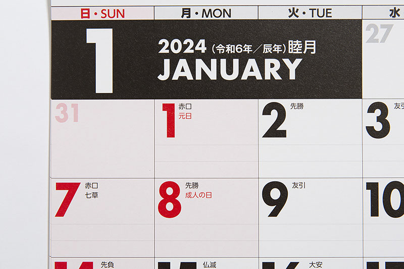 文字が太く、土日祝日に色が付いているので、見やすさ抜群。