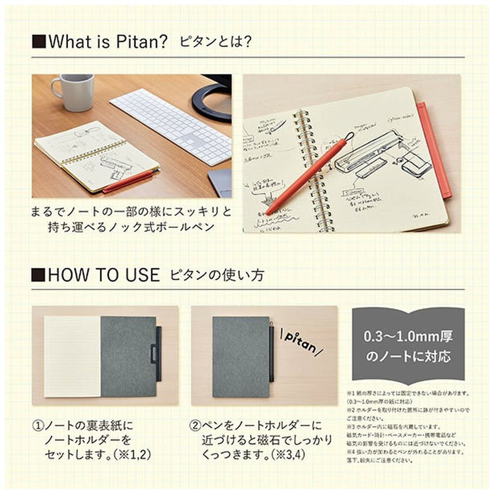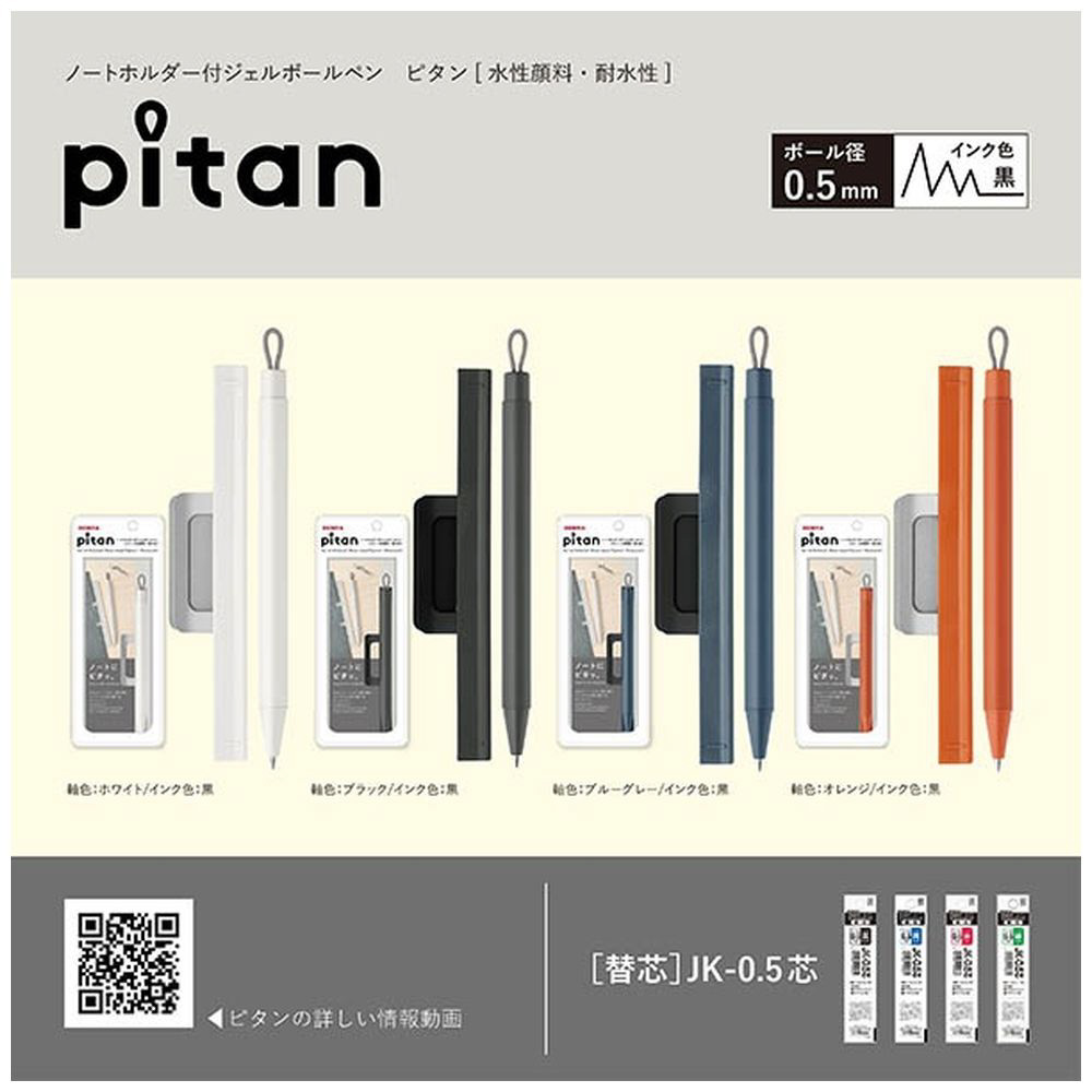 ノートホルダー付 ジェルボールペン pitan(ピタン) ホワイト(インク色:黒) P-JJ115-W [0.5mm]