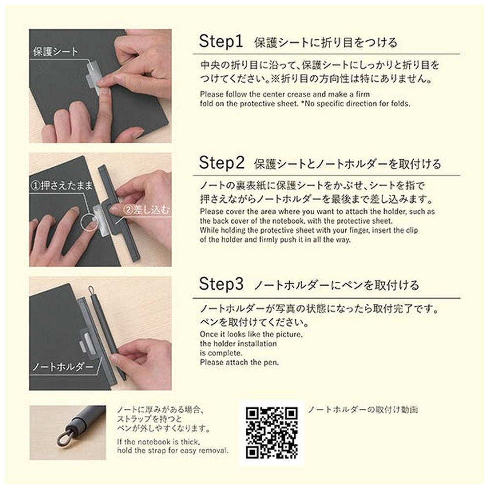 ※対応する紙の厚さ:0.3〜1.0mm。カバー付き手帳等、著しく厚い表紙には装着できない場合がございます。