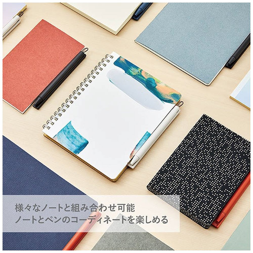 外観は“ノートと一体になるデザイン”を追求し、シンプルな形とノートのデザインに合わせやすい軸色を採用しています。