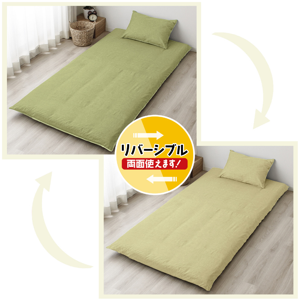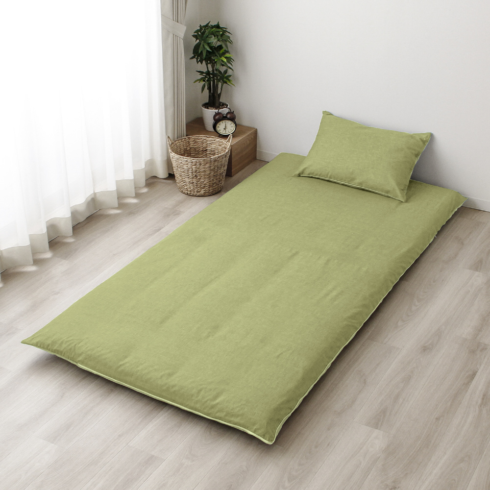 メリーナイト 大きく開いて ふとんが入れやすい 敷布団カバー シャンブレー調 濃淡無地カラー グリーン シングルロング 約105×215cm リバーシブル仕様 両面使える 着脱簡単 L字ファスナー 綿混素材 速乾 衛生 清潔