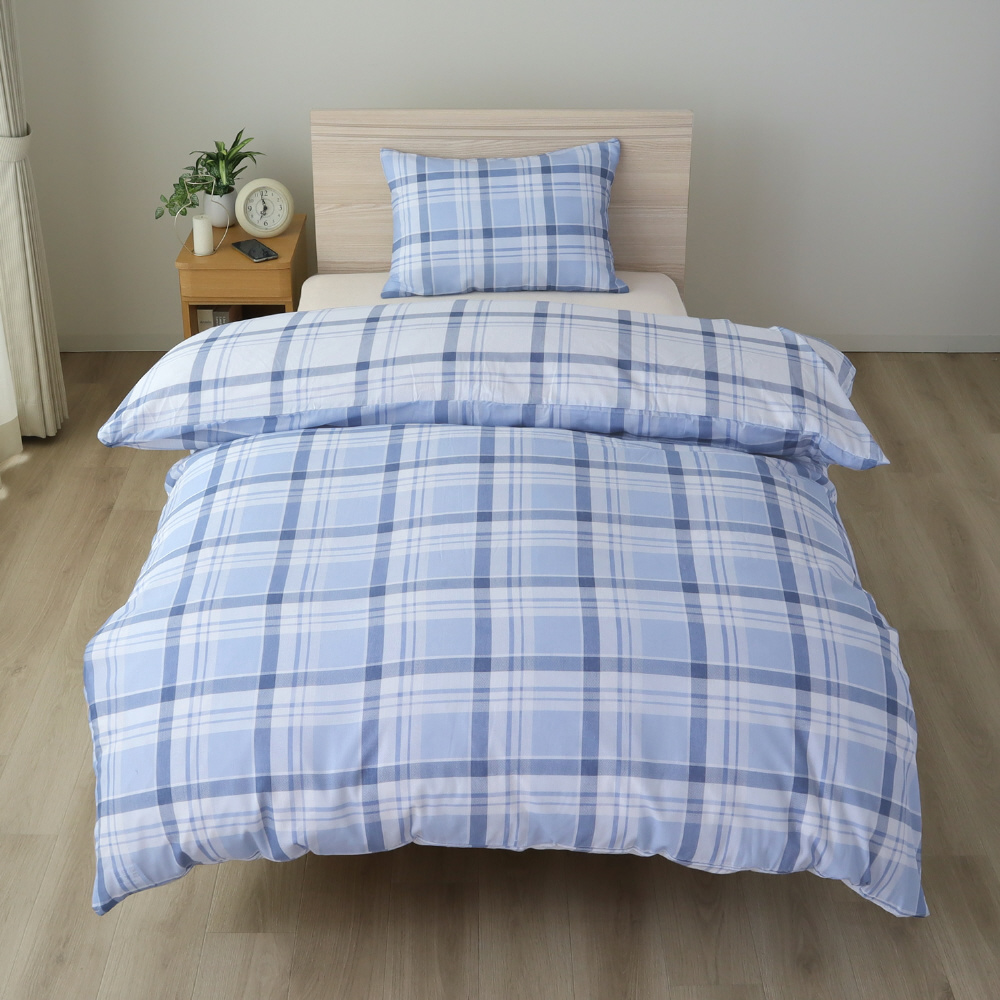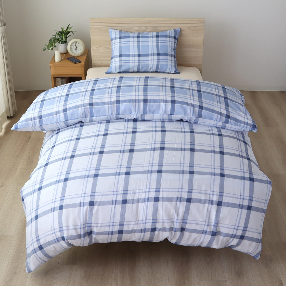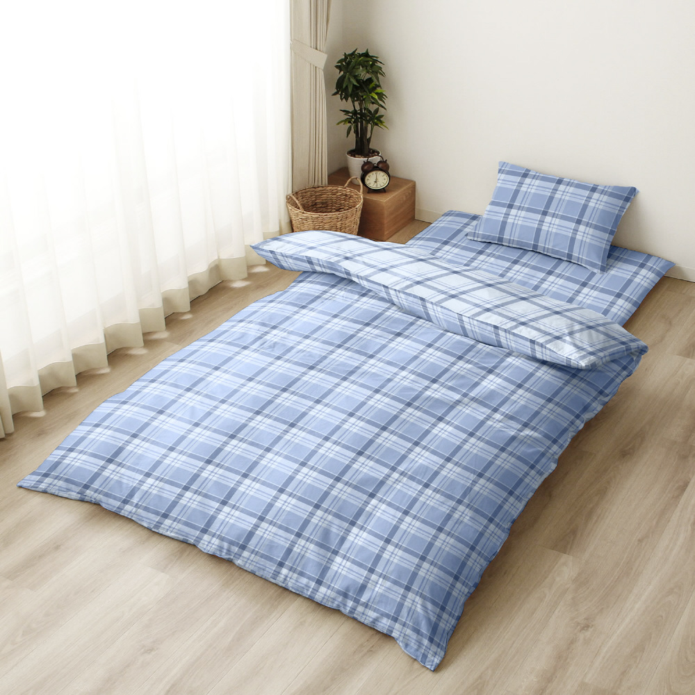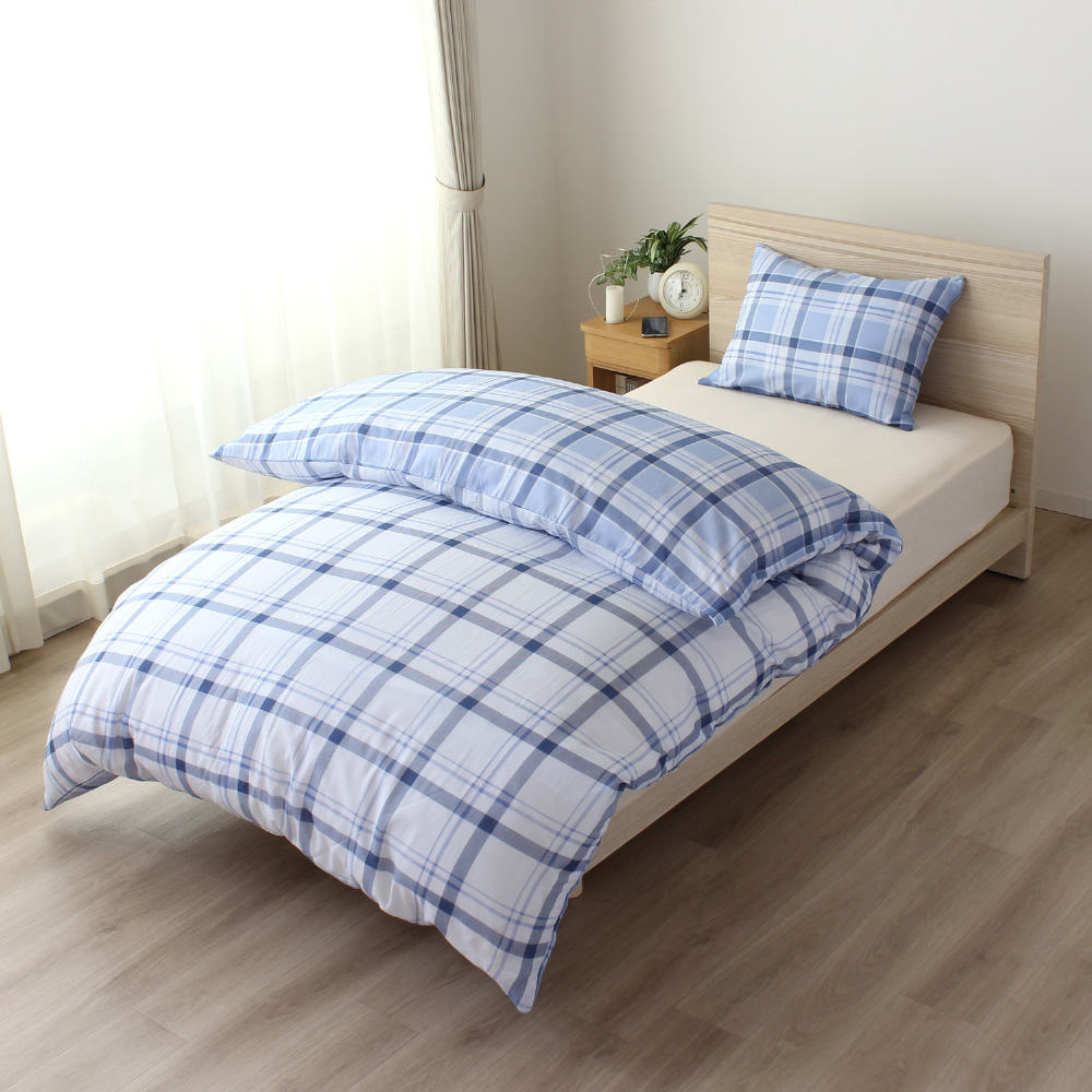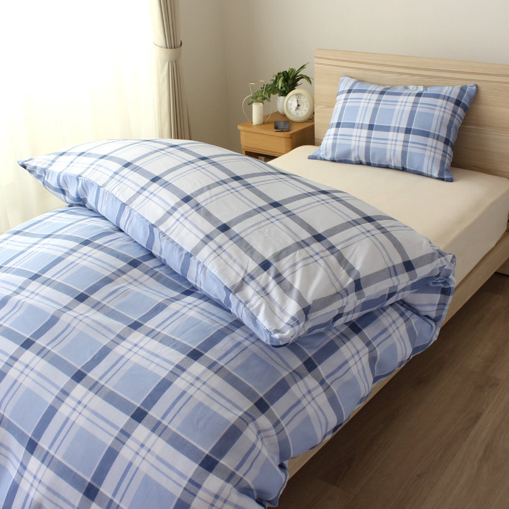 メリーナイト 掛布団カバー 濃淡チェック柄 ブルー シングルロング 約150×210cm リバーシブル仕様 両面使える 内側スナップボタン8カ所付き 着脱簡単 綿混素材 速乾 シワになりにくい 衛生 清潔 MerryNight