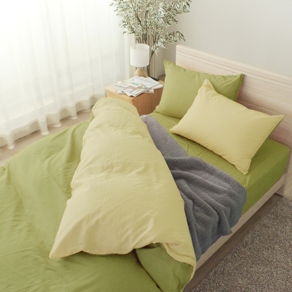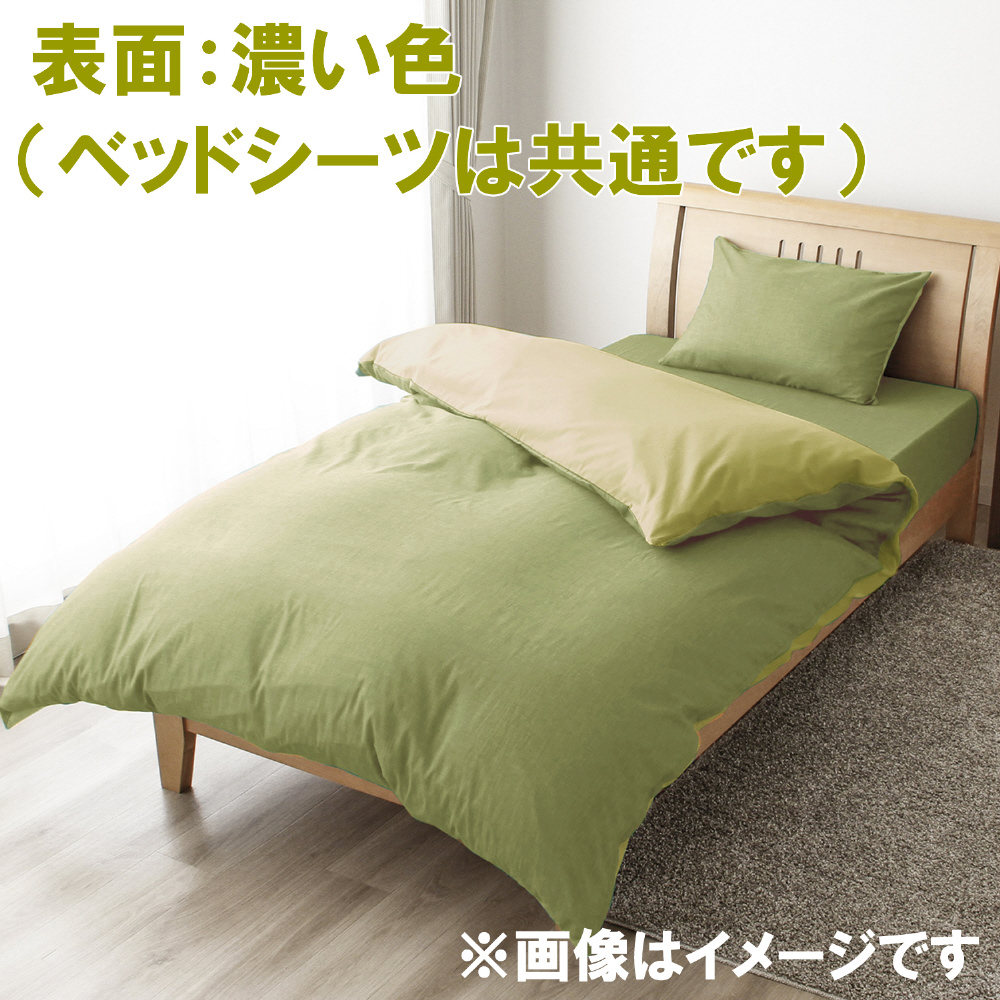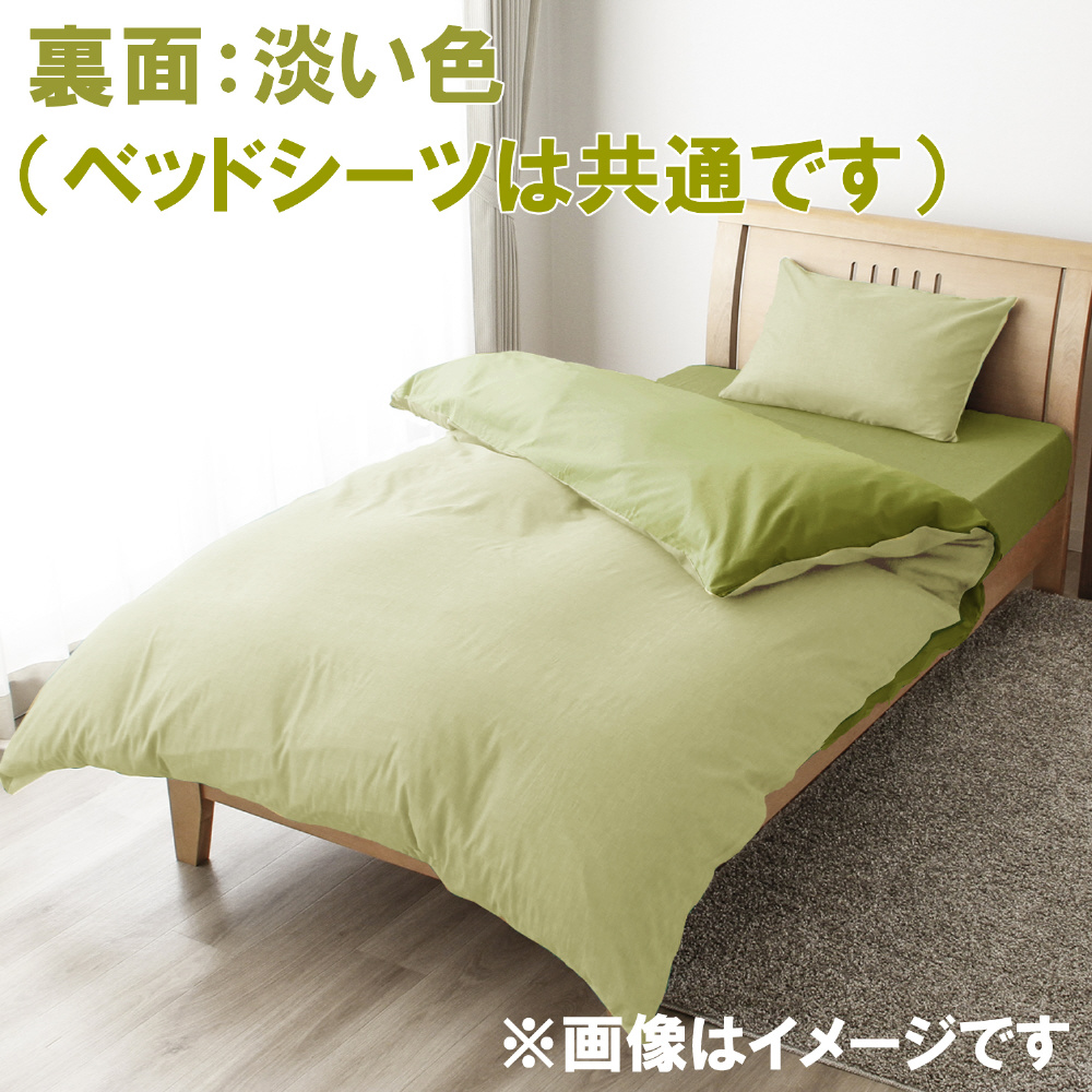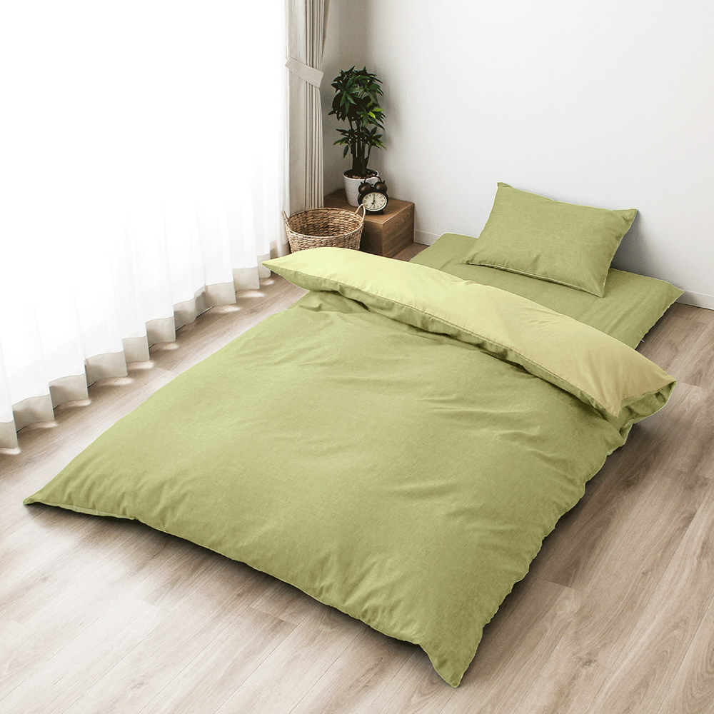 メリーナイト 掛布団カバー シャンブレー調 濃淡無地カラー グリーン ダブルロング 約190×210cm リバーシブル仕様 両面使える 内側スナップボタン8カ所付き 着脱簡単 綿混素材 速乾 シワになりにくい 衛生 清潔