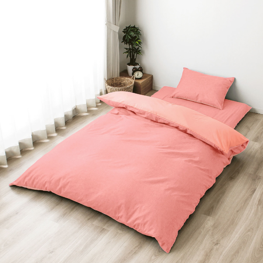 メリーナイト 掛布団カバー シャンブレー調 濃淡無地カラー ピンク ダブルロング 約190×210cm リバーシブル仕様 両面使える 内側スナップボタン8カ所付き 着脱簡単 綿混素材 速乾 シワになりにくい 衛生 清潔