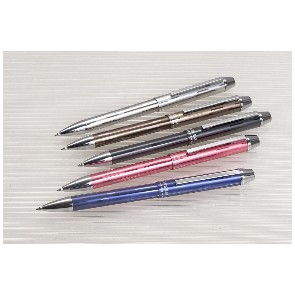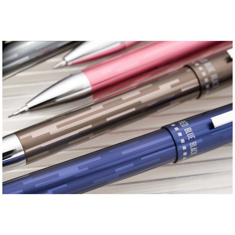 黒・赤・青の3色ボールペン+シャープペンシルをひとつのボディに搭載した多機能筆記具です。