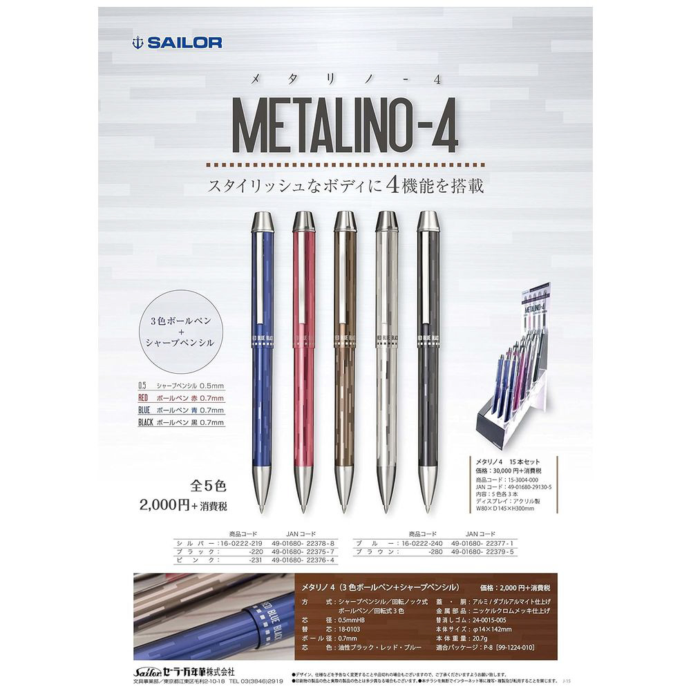 メタリノ 4(3色ボールペン+シャープペンシル)