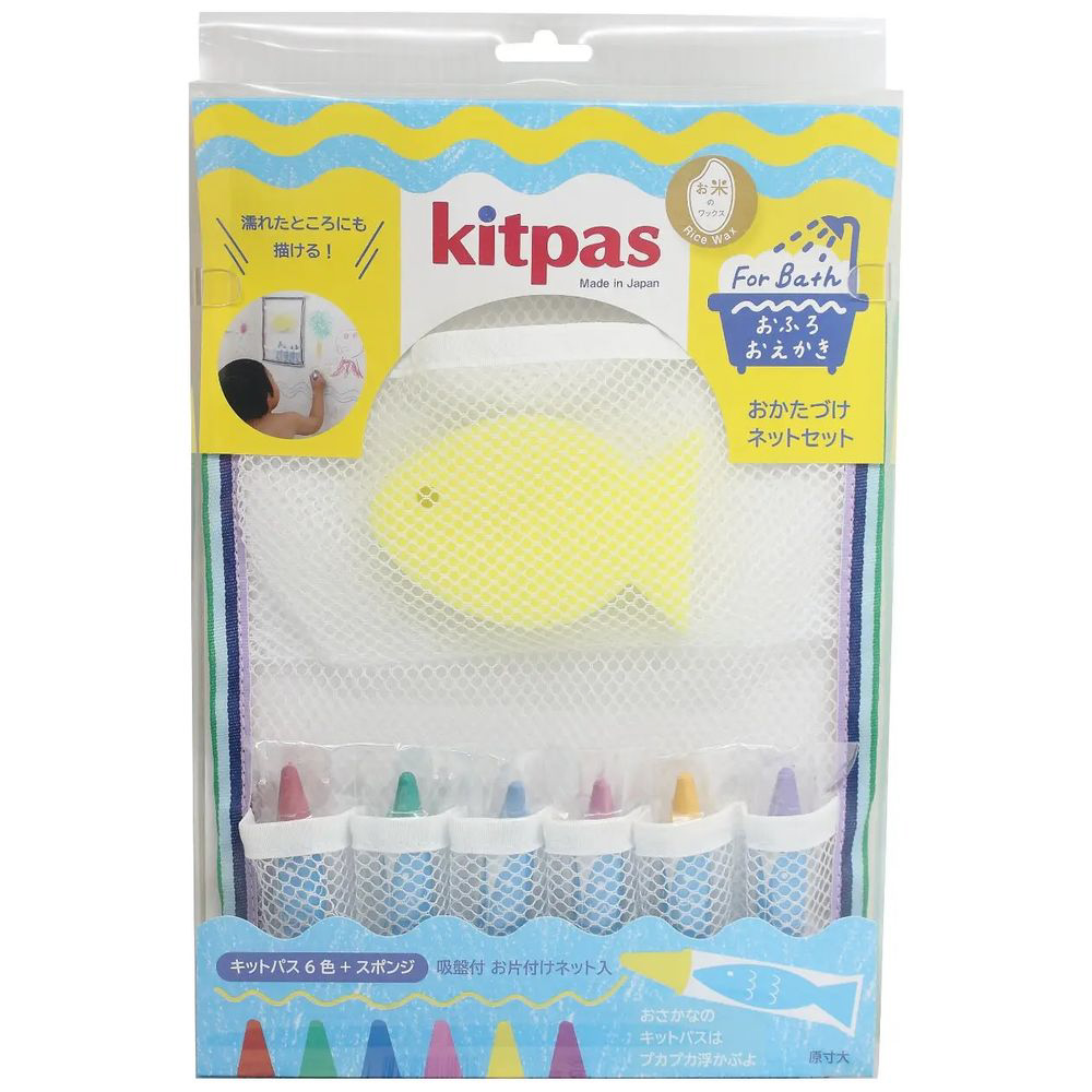おさかなの巻紙のキットパス(6色)と、おさかな型のスポンジが入ったネットセットです。
