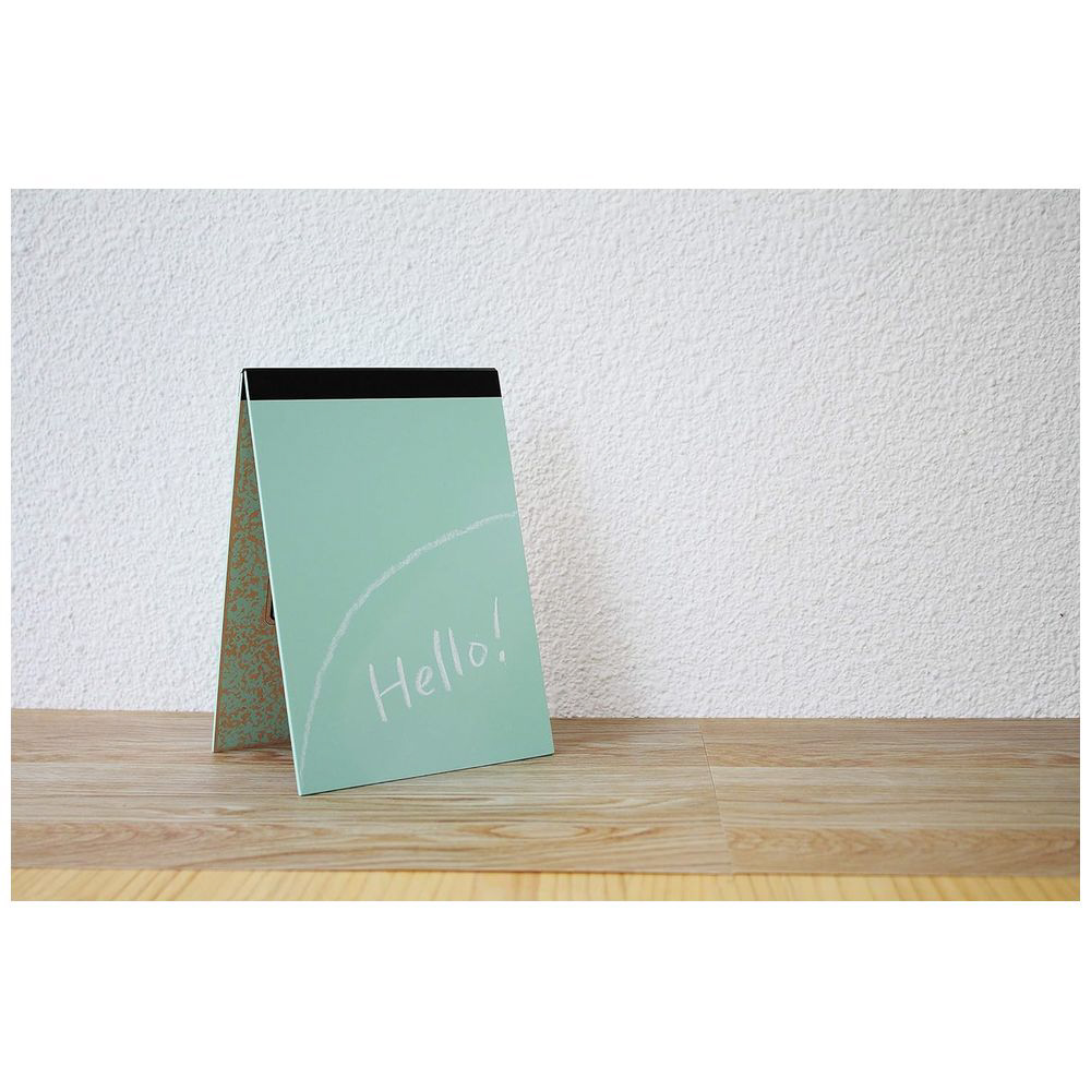 学校で親しまれてきたチョークと黒板が、もっと手軽で身近なかたちで、そばに置いていつでも 使用できるメモ型の黒板になりました。