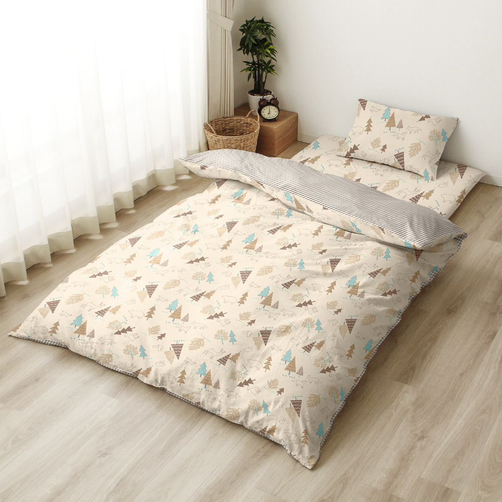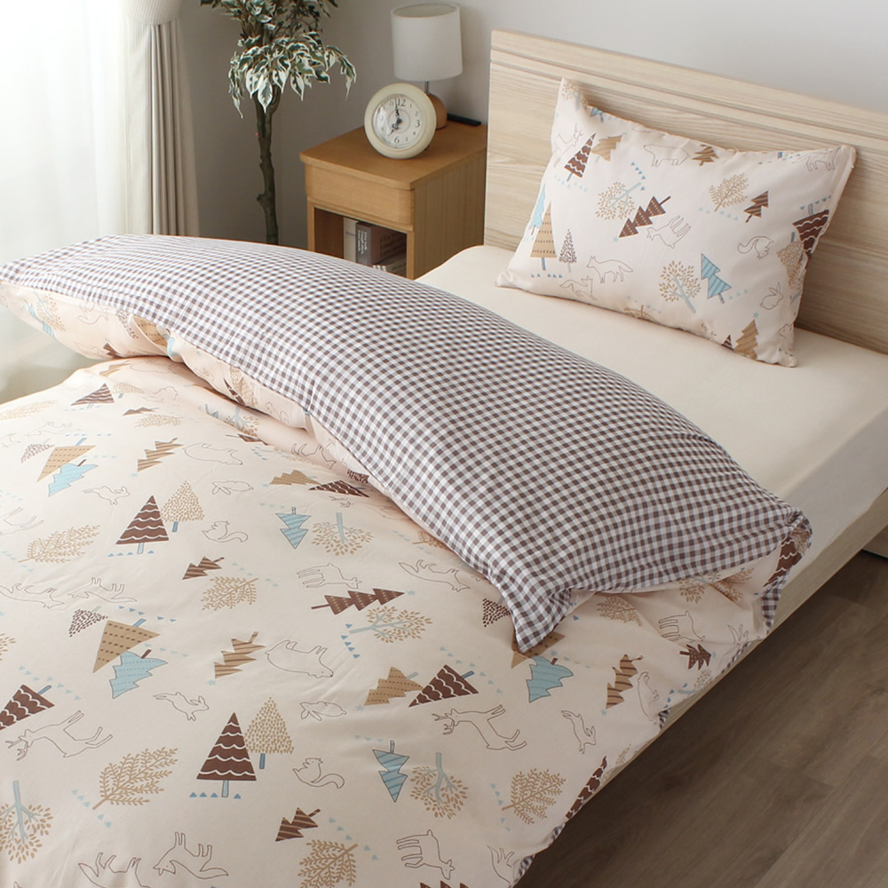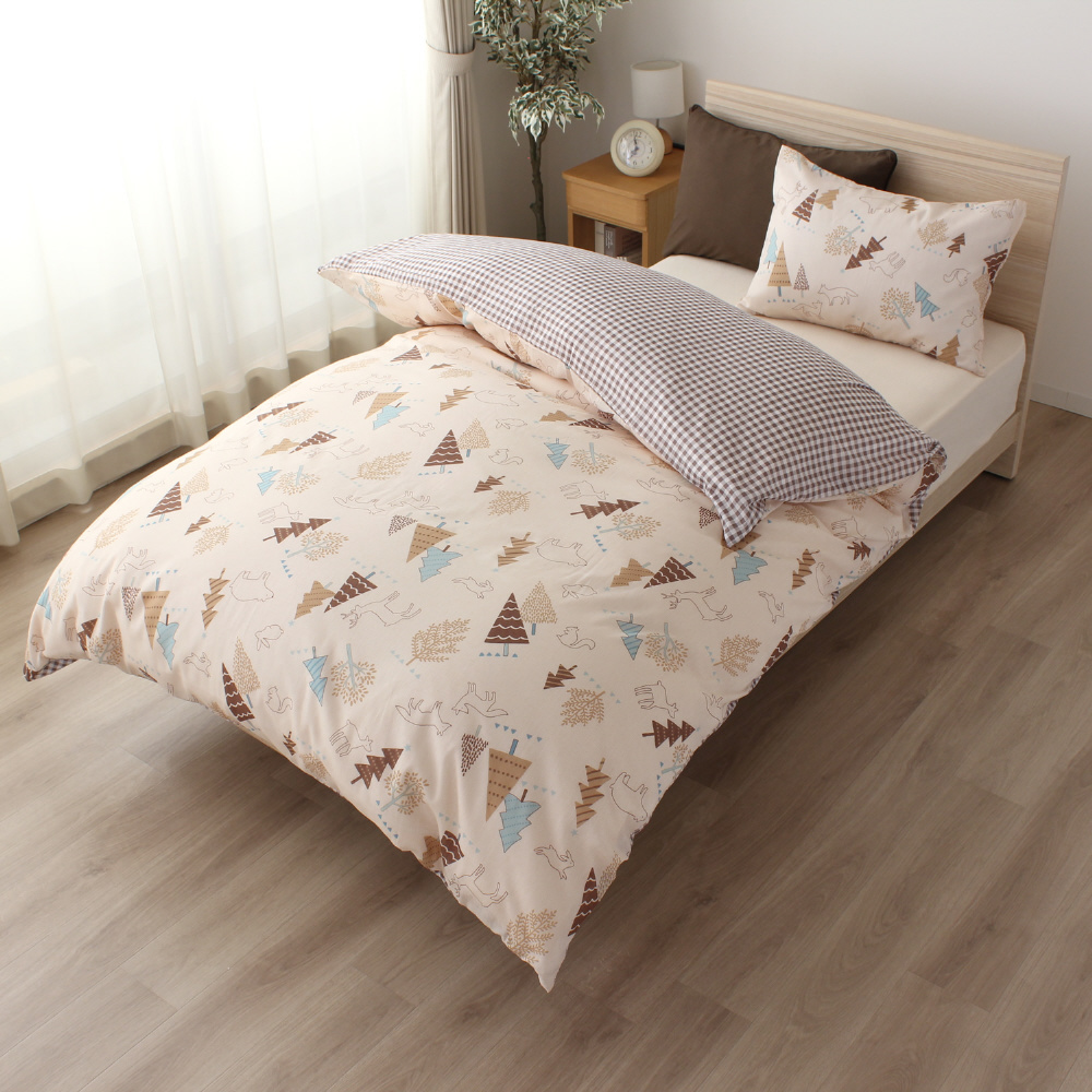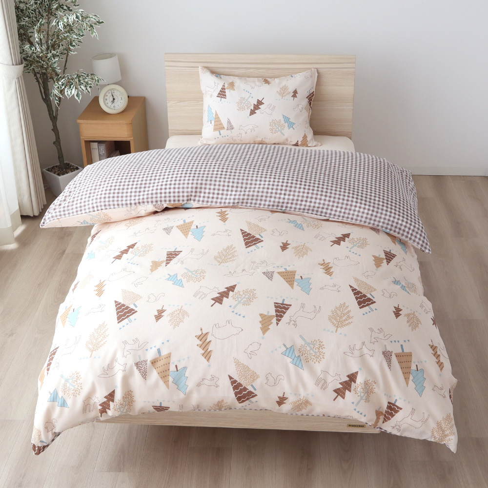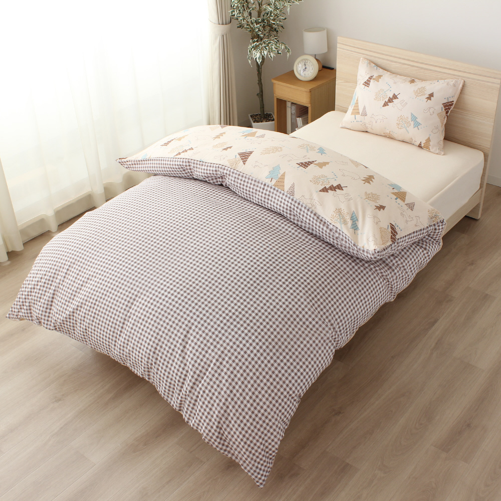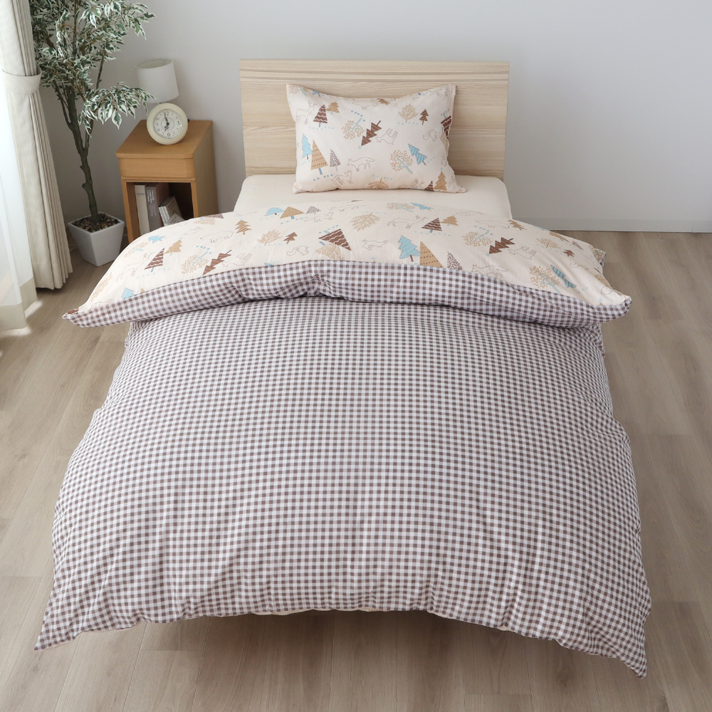 メリーナイト 掛布団カバー 北欧ツリー ギンガムチェック 約150×210cm リバーシブル仕様 両面使える 内側スナップボタン8カ所付き 着脱簡単 綿混素材 速乾 シワになりにくい 洗える 衛生 清潔 オールシーズン