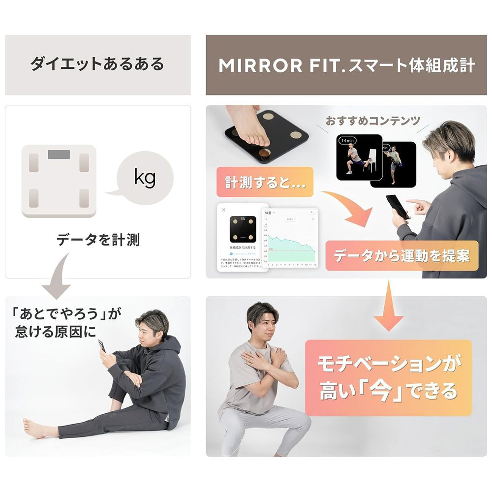 あなたの健康を記録し、アプリから運動を提案する「スマート体組成計」。測ってデータ管理をするのは当たり前。その先の解決策まで提案してくれる、新感覚の体組成計が登場!