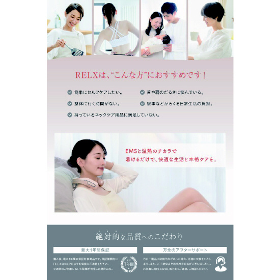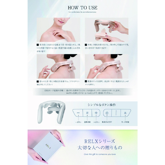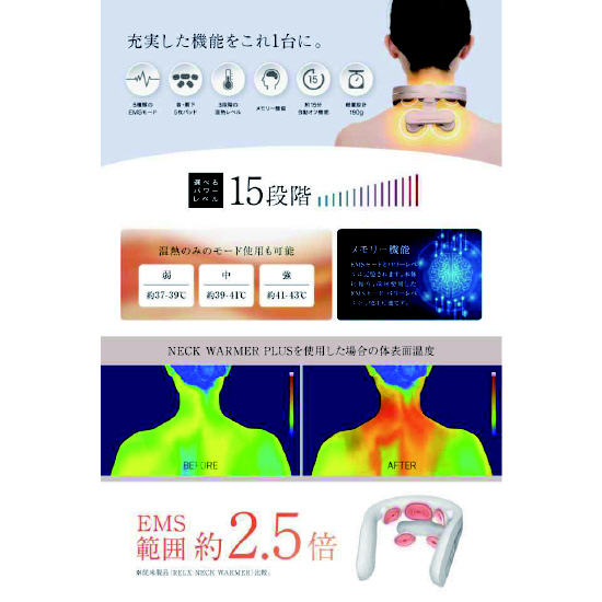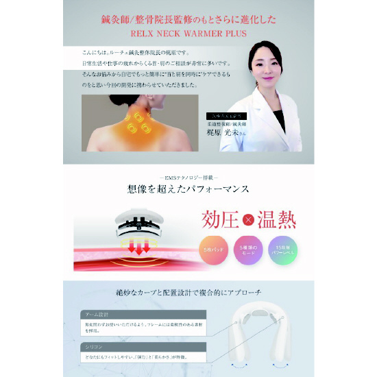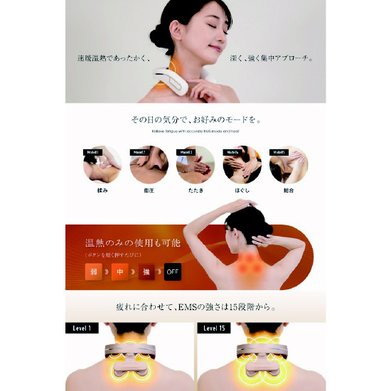 首・肩5枚パッド「速暖温熱」+「EMS振動」が想像を超えたパフォーマンスをお届けします。