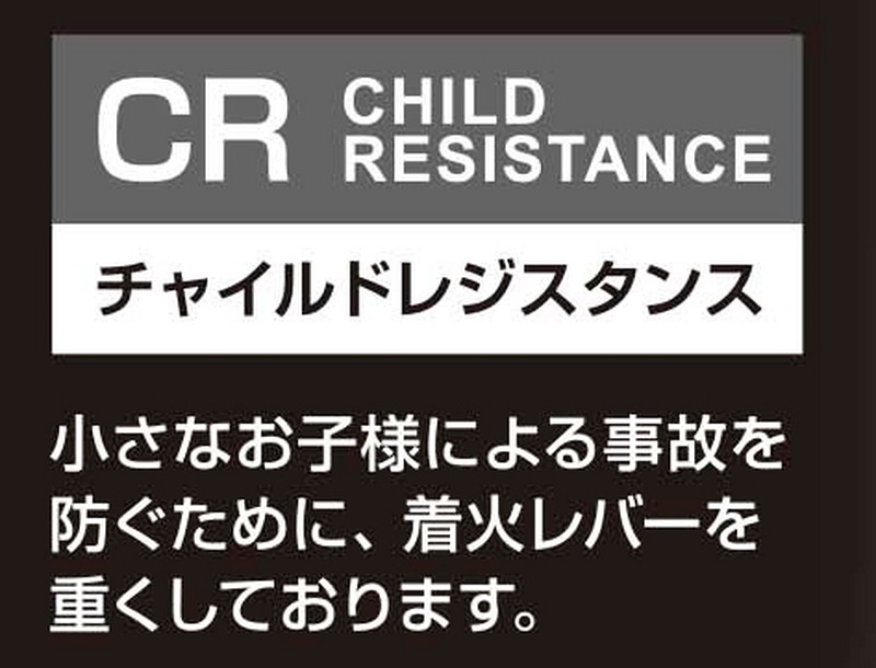 ■CR(チャイルドレジスタンス)機能付き小さなお子様による事故を防ぐために、着火レバーを重くしております。