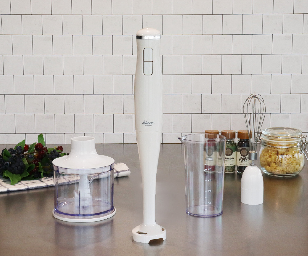 4役こなすハンディミキサー!2段階スピード調節、コンパクト収納、握りやすいスティック型で使いやすさ抜群。