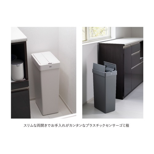 お気軽にお使いいただけるプラスチック製のスリムな両開きセンサーゴミ箱
