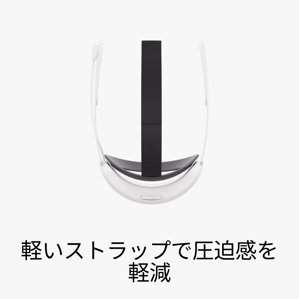 快適にプレイを楽しめる、人間工学に基づいたデザインのヘッドストラップ。