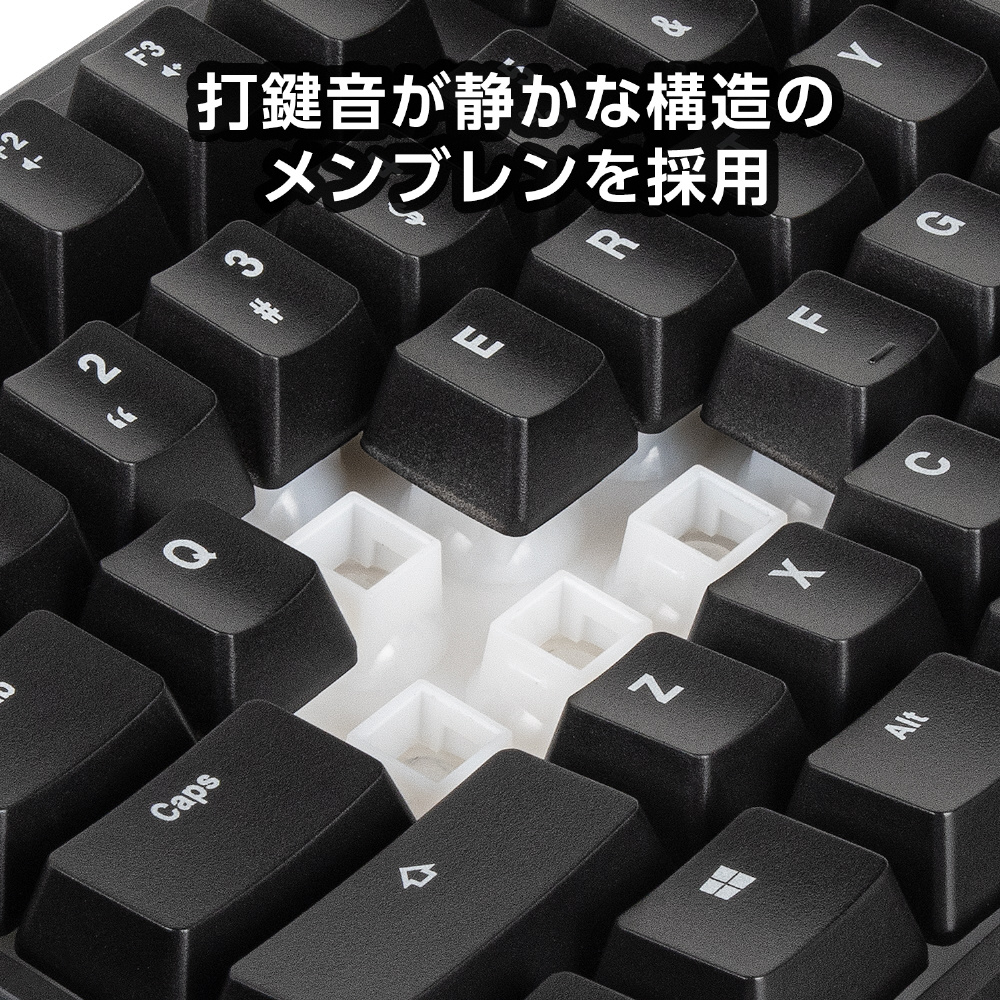 コンパクトなテンキーレス(TKL)型のメンブレン式ゲーミングキーボード