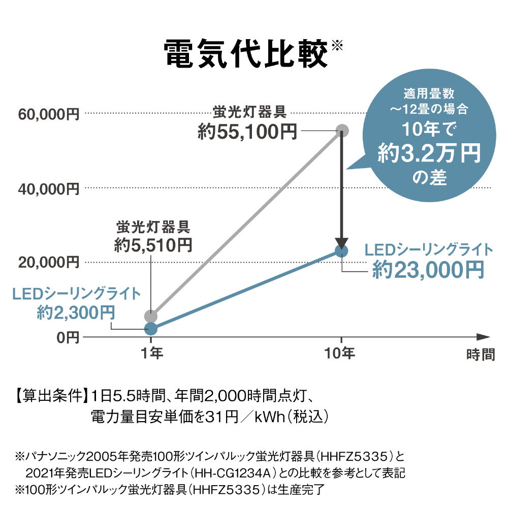 注)明るさアップモード時は全灯時より光束と消費電力が増加し、固有エネルギー消費効率が低下します。